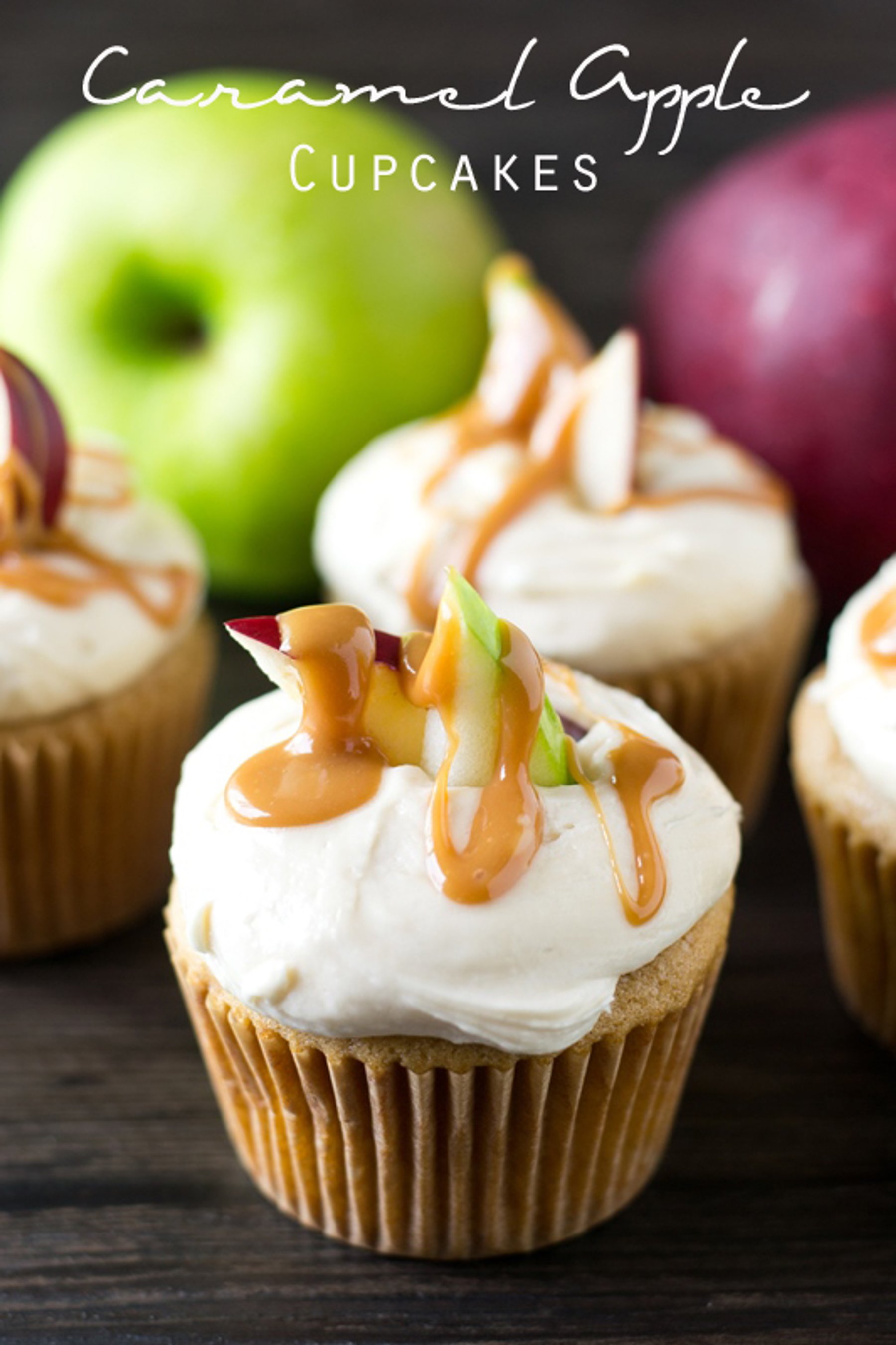 Soft cupcakes flavored with apple and caramel in both the cupcake and the buttercream. Decorate the top with apple slices and drizzle with caramel for a pretty look!
