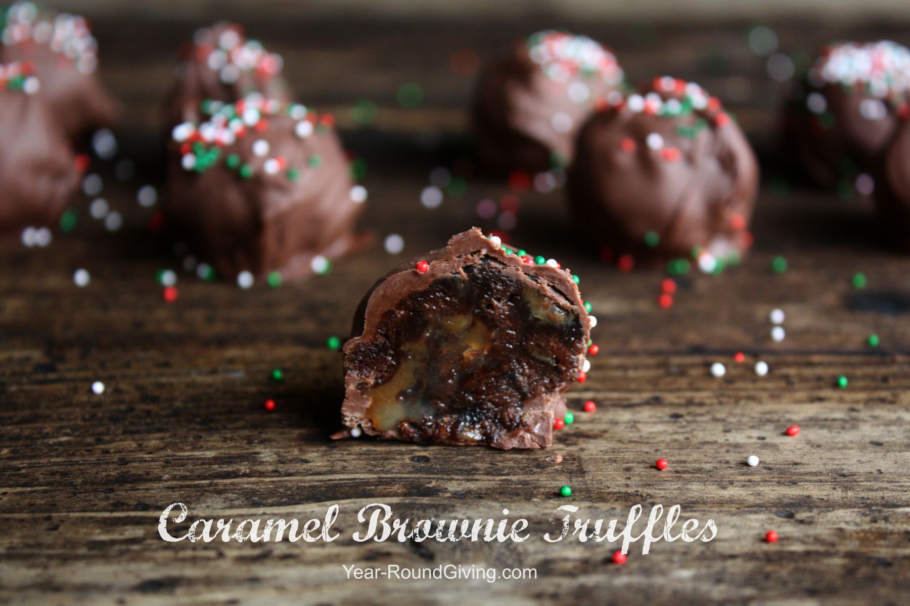 If you love chocolate then you will love these Caramel Brownie Truffles. Add some holiday colored sprinkles and these make lovely a gift.