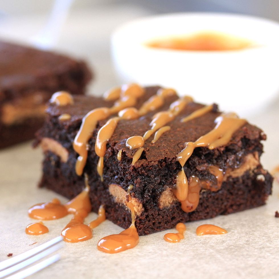 Caramel Crown Brownies by Sugar Salt Magic. Dense and fudgy Chocolate Brownies with a hit of caramel and cookie in the centre.
