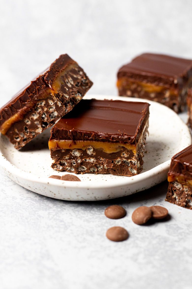 Caramel Crunch Bars Simply BakeNovember 13, 2020 187 A deliciously thick and crunchy layer of Rice Krispies loaded chocolate topped with a generous layer of caramel, and a smooth and creamy layer of chocolate. These no-bake bars are ABSOLUTELY irresistible!Get the recipe on Marsha's Baking Addiction!See the full directions on my site no-bakechocolatecaramelbars