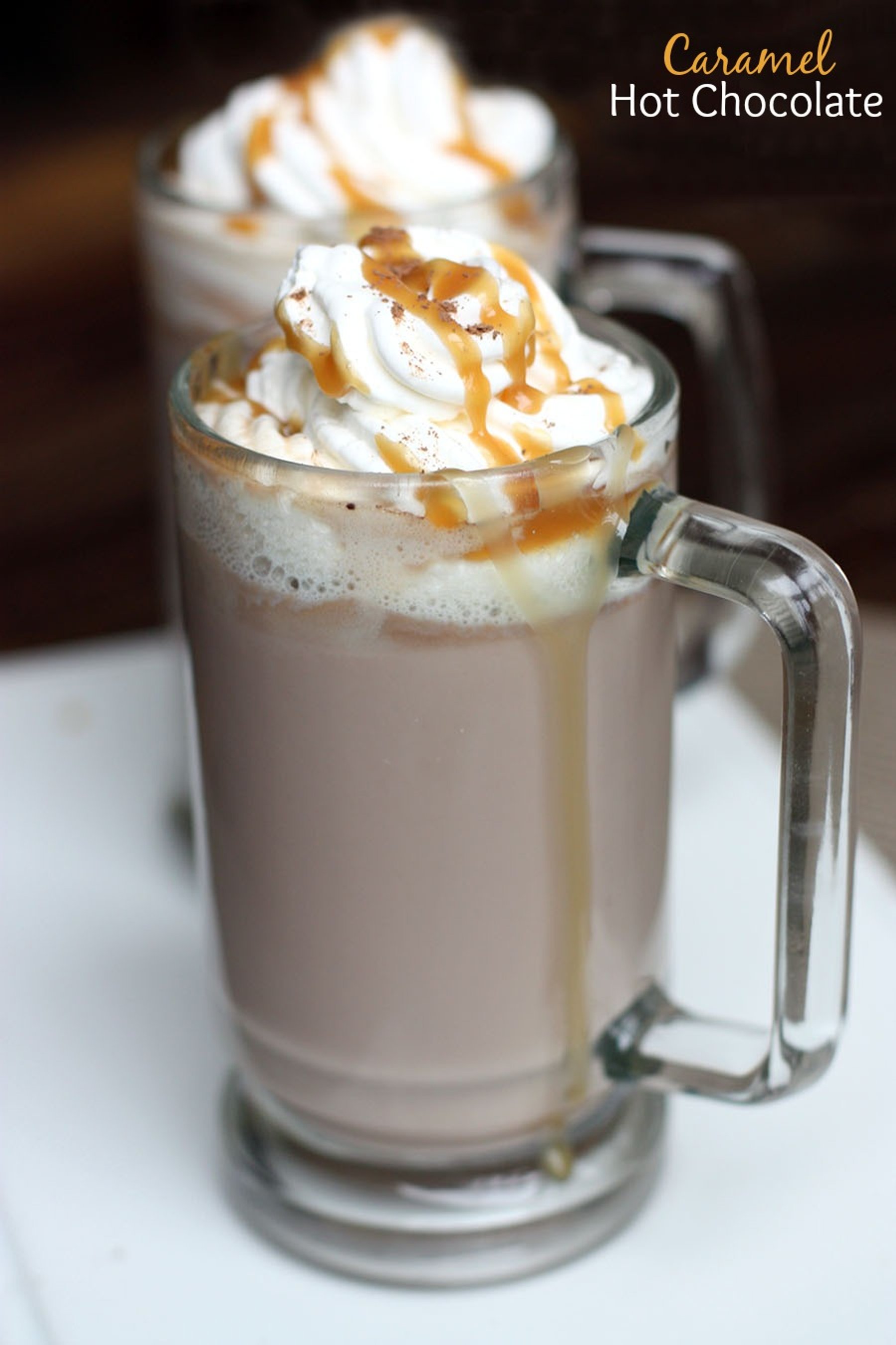 Rich and creamy hot chocolate recipe with a simple homemade caramel sauce!