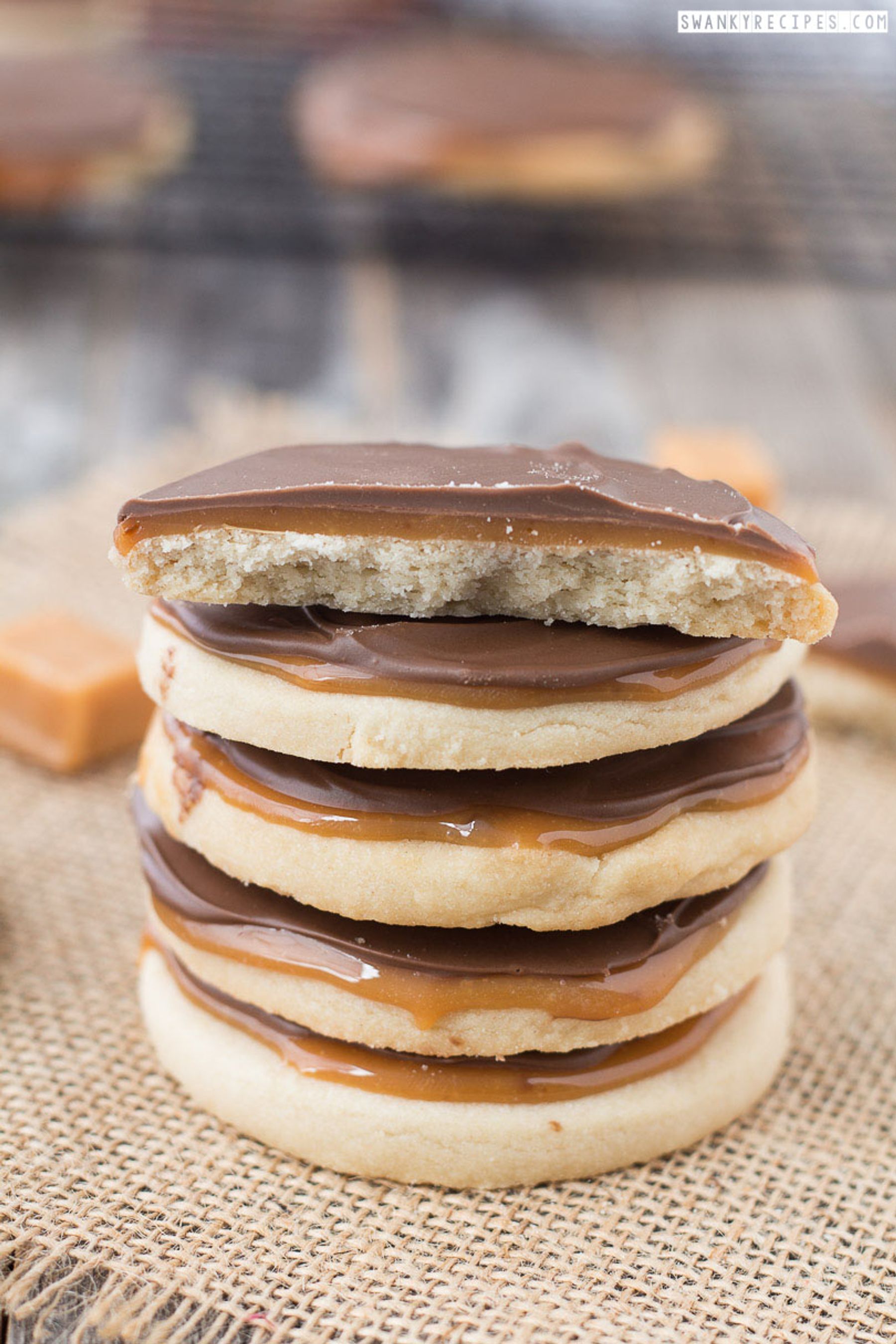 Shortbread cookie crust topped with melted caramel and milk chocolate. Everyone will love these Twix candy bar inspired cookies with silky smooth caramel and luscious chocolate.