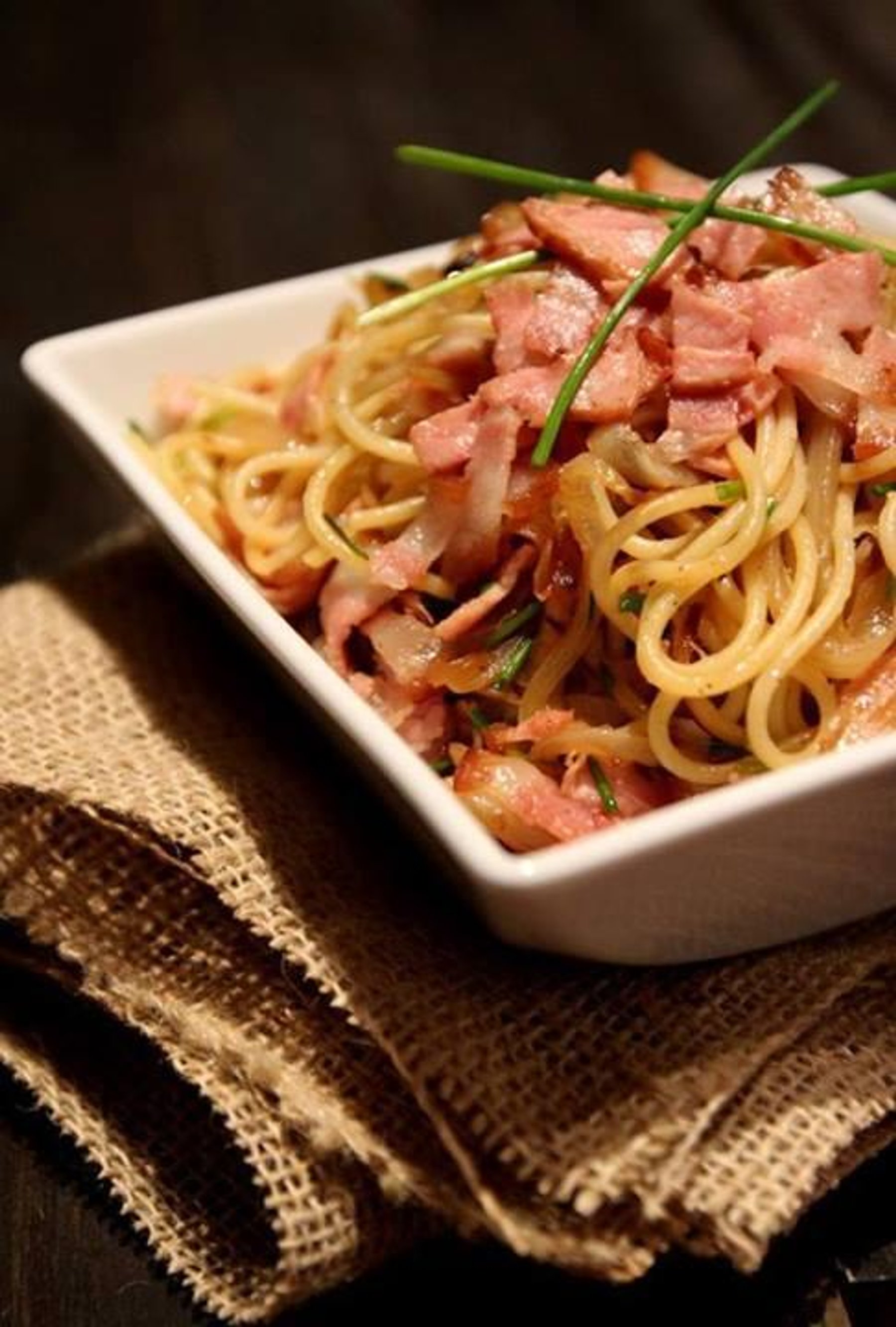 Caramelized Onion & Bacon Spaghetti