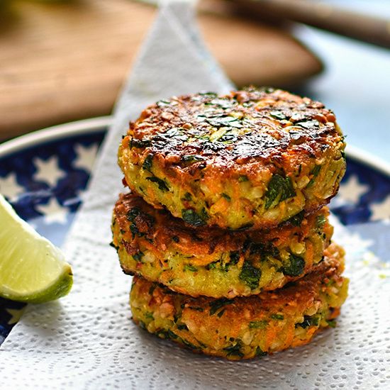I find these delicious fritters combine particularly well with feta cheese, the saltiness of the feta perfectly balancing the natural sweetness of the fritters, so I serve them with lemon or lime wedges and a simple Greek-style salad of tomato, olive, feta, cucumber and red onion.