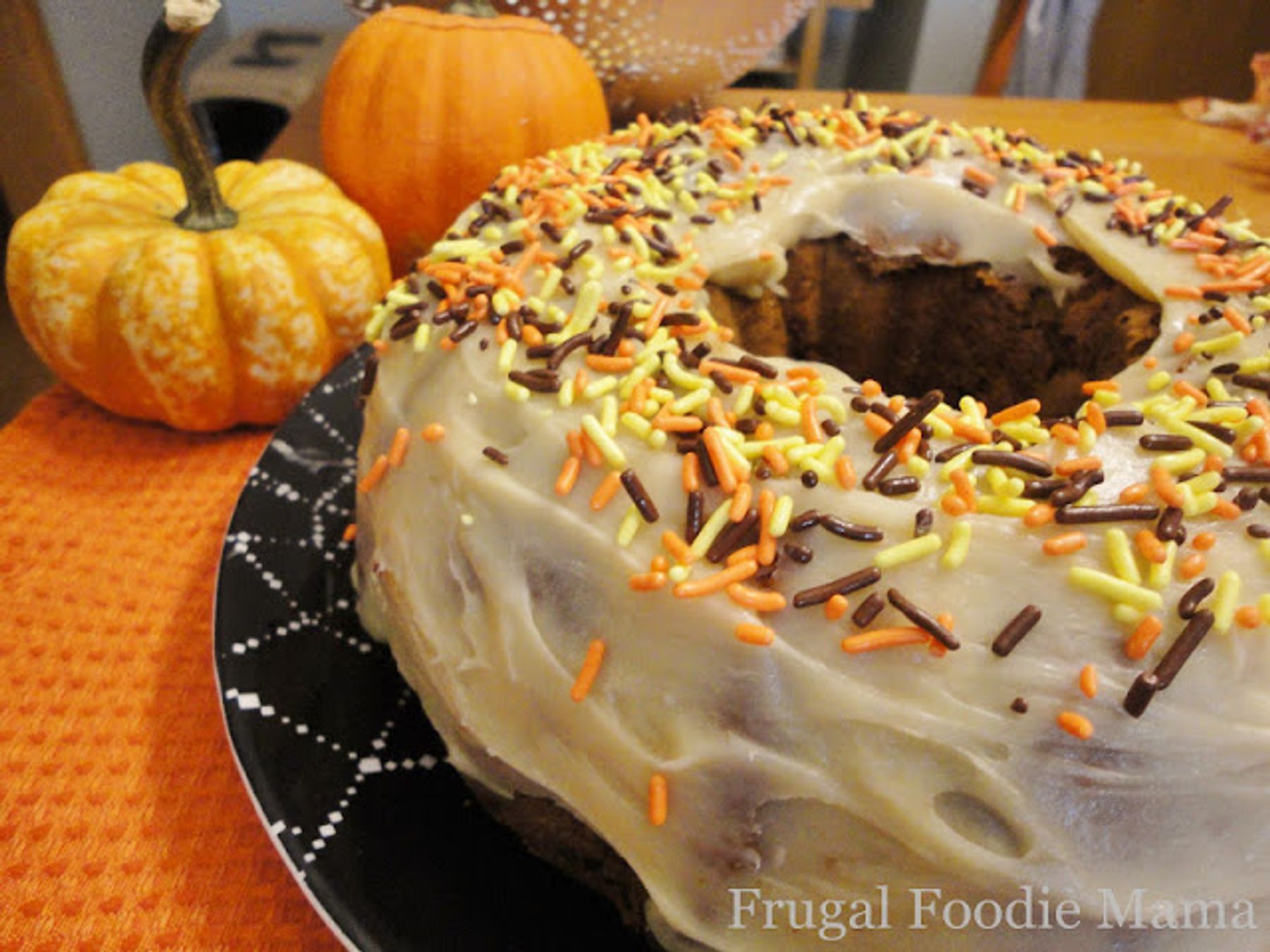 Looking for something a little different (you know, something other than a pie? ;) ) to bring to Thanksgiving dinner this year? How about a bundt cake?? Yes, I am obsessed with bundt cakes. There is just something classic about a good old fashioned bundt cake, right? And it is pretty difficult to not make a bundt cake look pretty. They come out looking pretty before you even frost or glaze them! ;) I actually made this cake for a Halloween costume party last month, and it was a HUGE hit with