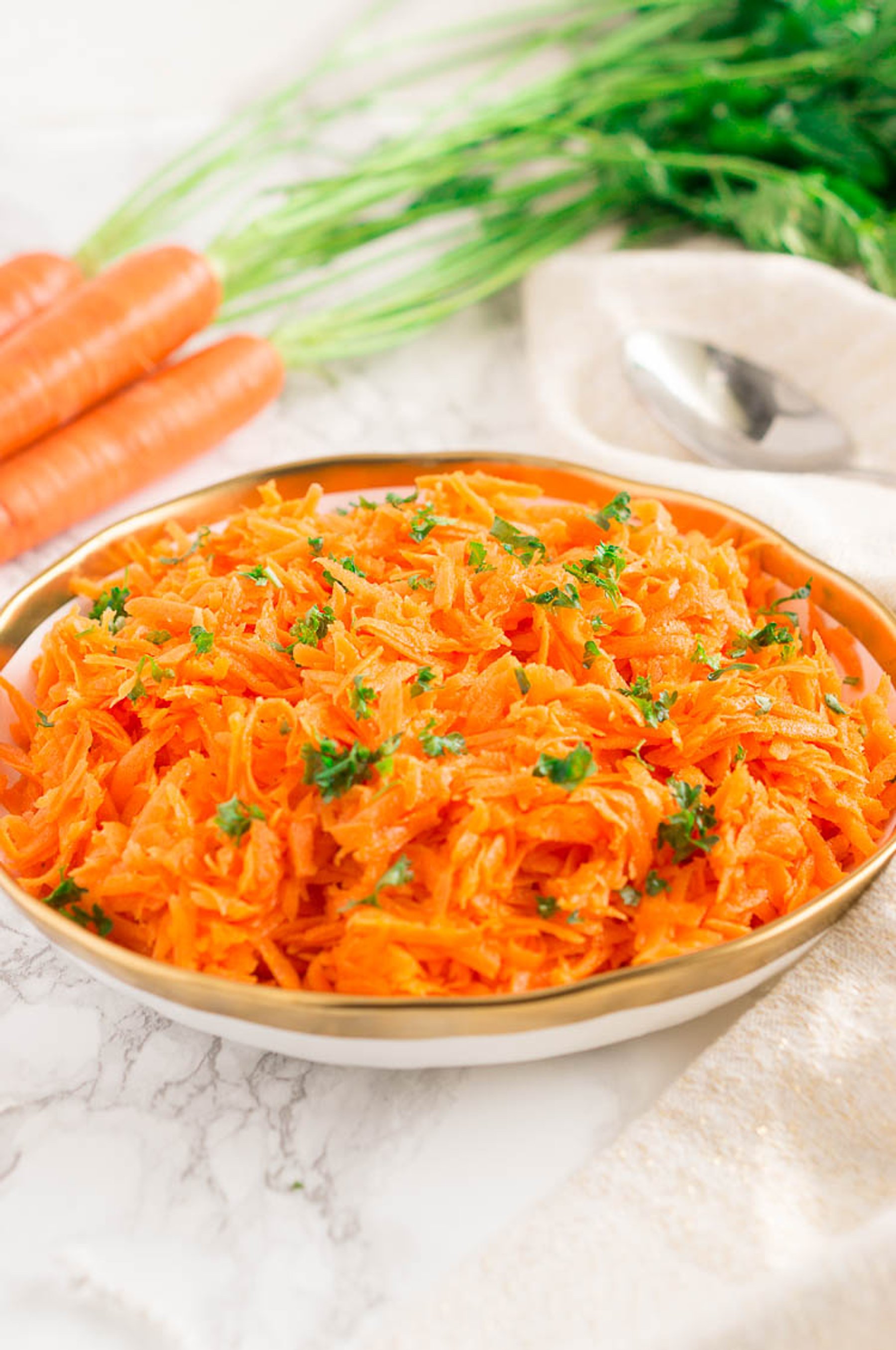 This beautiful Carrot Salad is a healthy side dish filled with bright, fresh and delicious flavors. The BEST carrot salad! Also Paleo, low-carb and gluten-free.