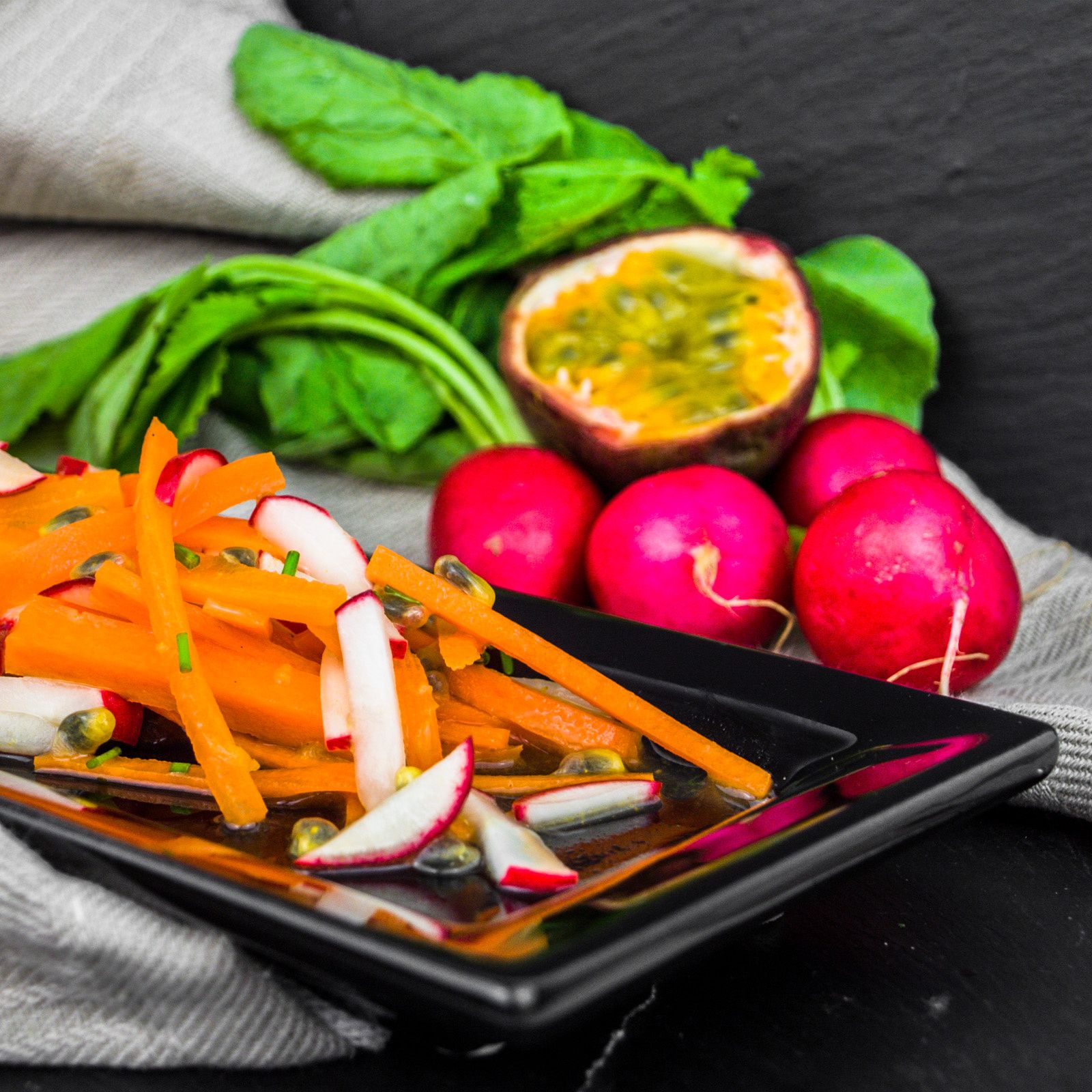 Side Dishes Carrot and radish salad with passion fruit dressing InJohnnysKitchenJune 25, 2018 57 Photo by InJohnnysKitchen.com Check out this delicious recipe!See the full directions on my site