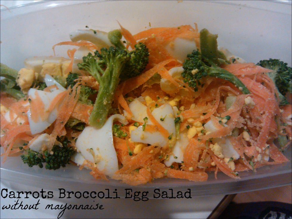 Step 4: Mix all ingredients in a bowl. Add about a forkful of mayonnaise. "Gasp! But that's unhealthy!", you might protest. Don't fear, this is not a requirement and a little mayonnaise shouldn't be too harmful. However, if you and Mayo just can't seem to share the same room, then, by all means, show Mayo the front door. Just sprinkle some salt on the salad (something that I encourage you to do even if you do add mayonnaise). Enjoy!