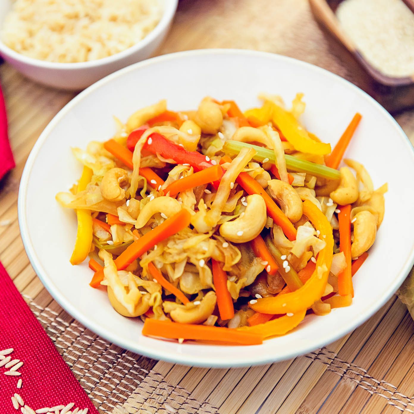 Healthy and delicious cashew cabbage is loaded with yummy veggies and cashews. A quick and easy meal, vegan, oil free, and gluten free!