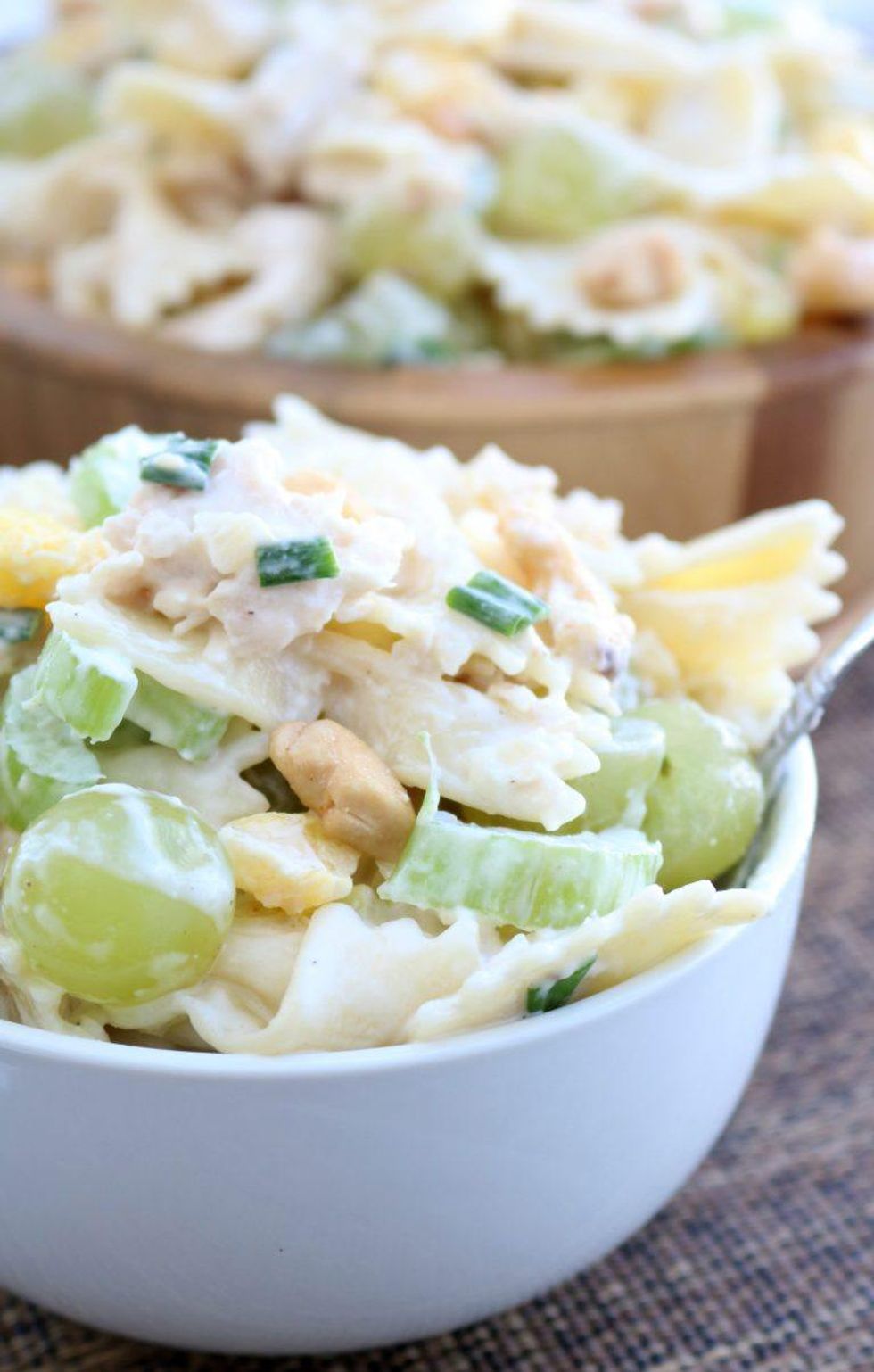 This cashew chicken pasta salad is the perfect combination of flavors. A combination of bow tie pasta, chicken, cashews and pineapple with a delicious creamy dressing. SO delicious and easy to make.