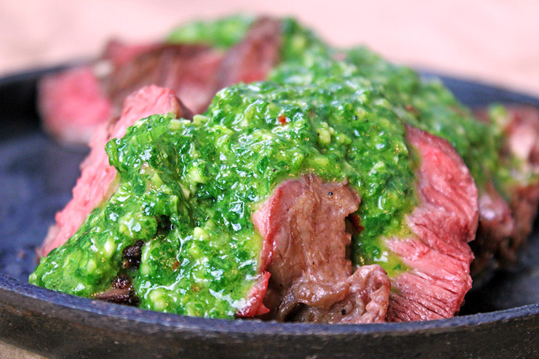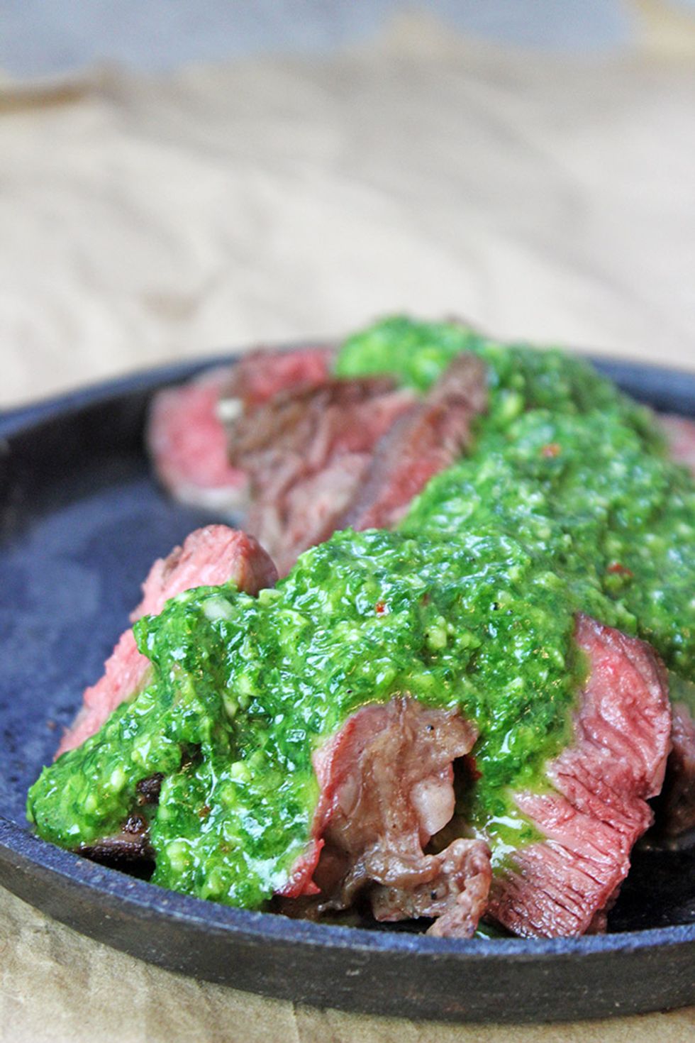 Vinegary, spicy, fresh & garlicky, this Chimichurri sauce will make any meal outstanding especially this Cast Iron Ribeye!