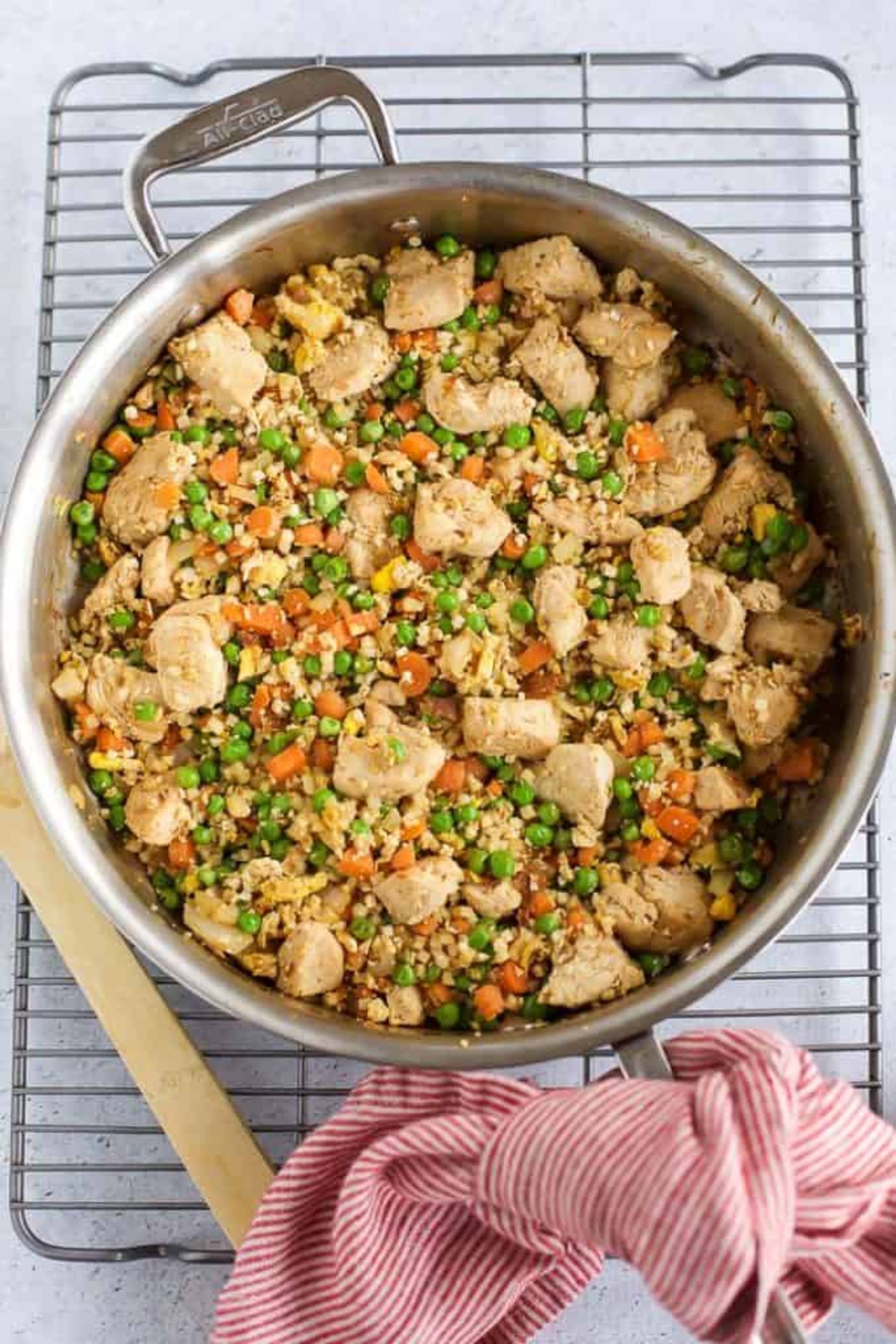 Cauliflower Chicken Fried Rice {low carb, gluten free} · Seasonal Cravings Karen Kelly February 22, 2020 74 www.seasonalcravings.com try it See the full directions on my site Cauliflower Chicken Fried Rice for the win. You'll love this easy low carb cauliflower rice and chicken. {low carb, gluten free} seasonalcravings.com