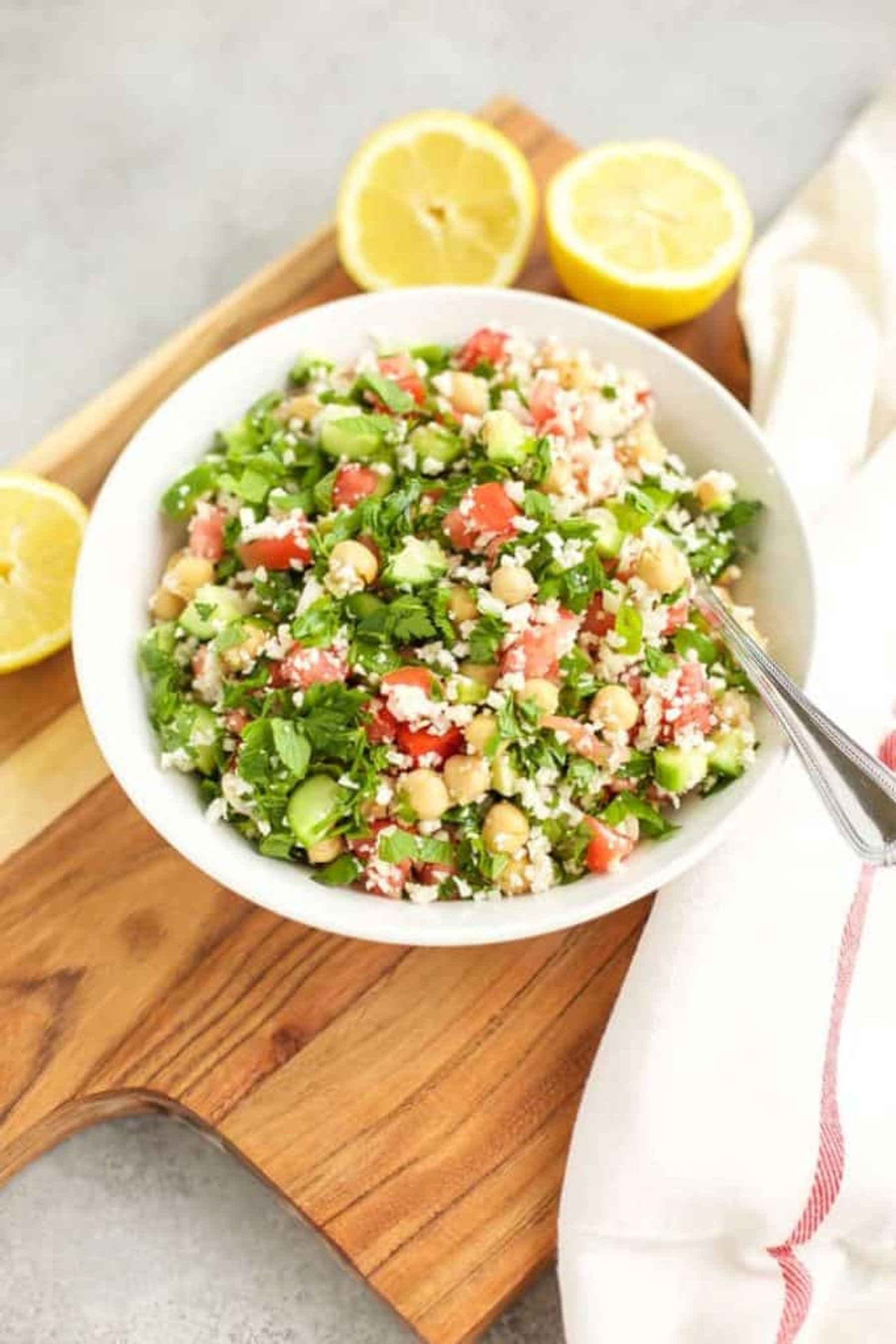 This super healthy Cauliflower Tabbouleh is full of bright vegetables and tossed with a simple, lemony dressing. You can feel good about this one!