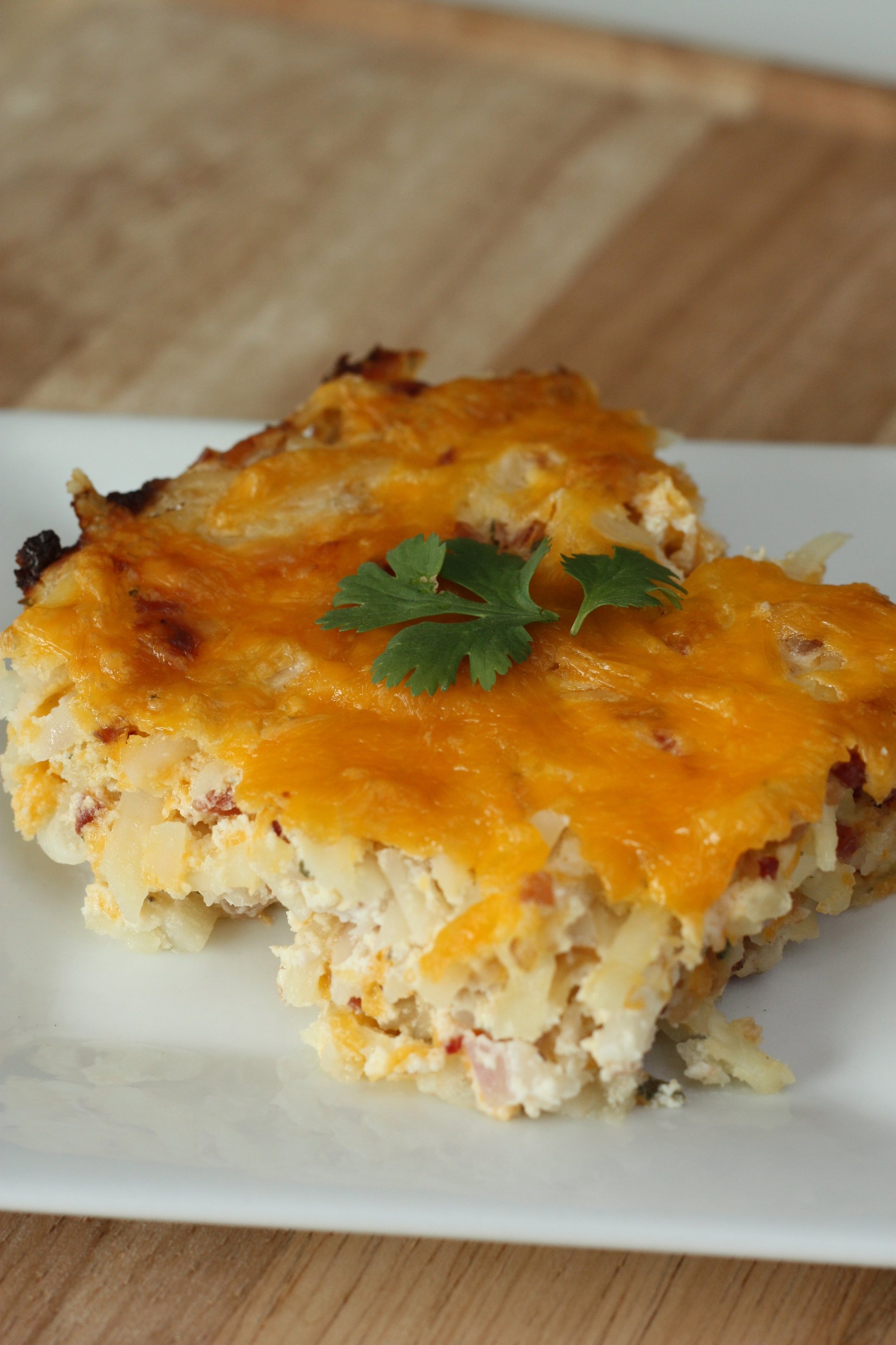 Combine first 4 ingredients, mix in hash browns. Spread into a 9x13 pan. Bake at 400 for 45-60 minutes.