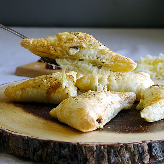 These savory puff pastry turnovers are stuffed to bursting with three delicious cheeses, crispy bacon, spicy chipotle peppers, and sweet dates. Get the recipe: alittleandalot.com
