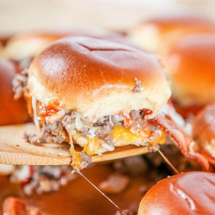 Cheeseburger Sliders: Juicy beef, and melty cheese come together in this family favorite. All the flavors of a cheeseburger in the palm of your hand!