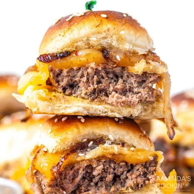 Caramelized onions and melty cheese atop a toasty bun are the epitome of deliciousness. These cheeseburger sliders are perfect for football!