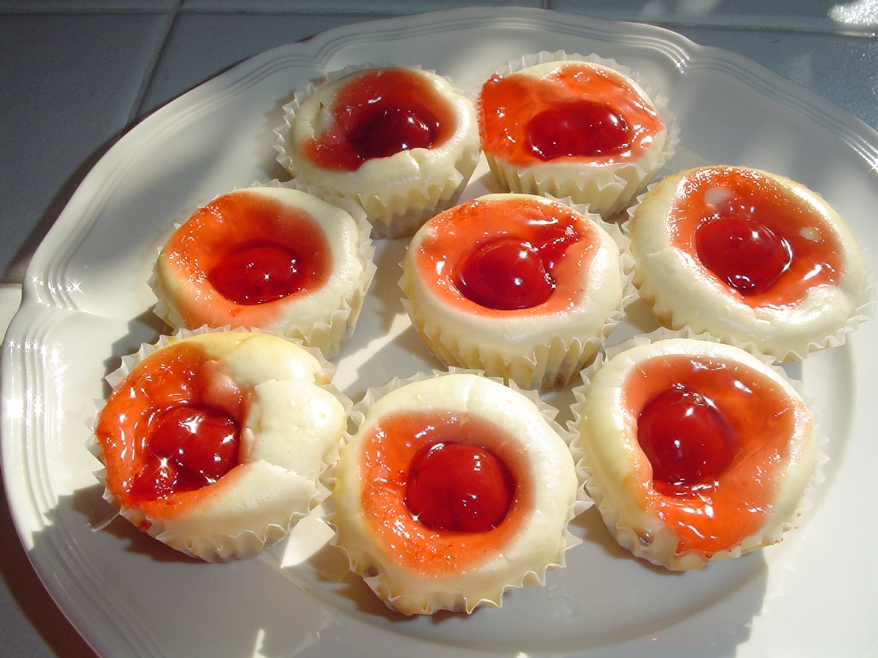 If you like cheesecake than these are for you. My mom made a slightly different version of this recipe that you make in an oblong pan and then cut into squares. I took the original recipe and changed it up a bit, making individual servings in mini muffin cups. I also added the cherry pie filling on the top. These were the most popular offering on my holiday cookie tray last year and I plan to double the batch this year.