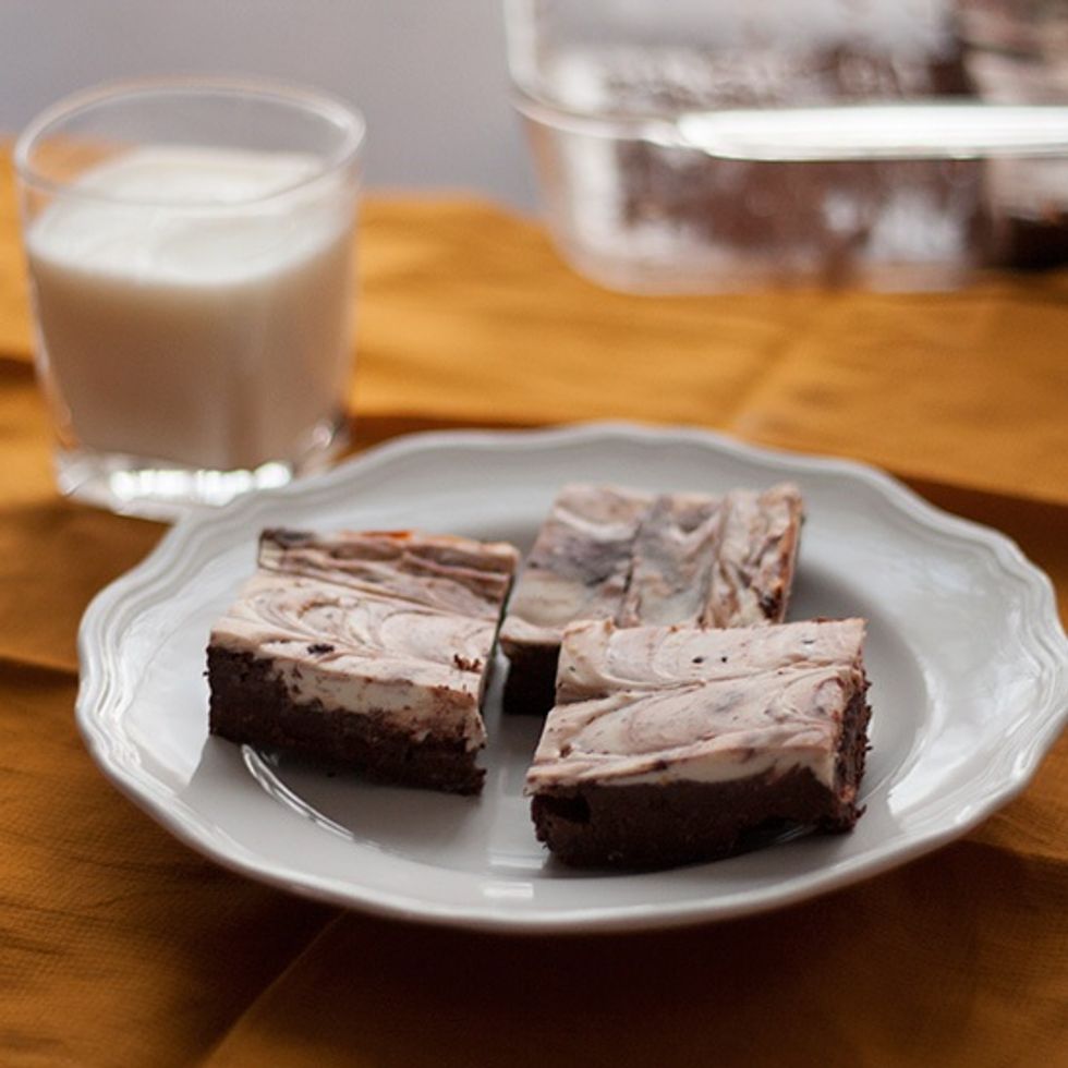 Super fudgy, brownie, and black beans all apply to this recipe! Healthy and indulgent, topped with a light egg-free cheesecake.