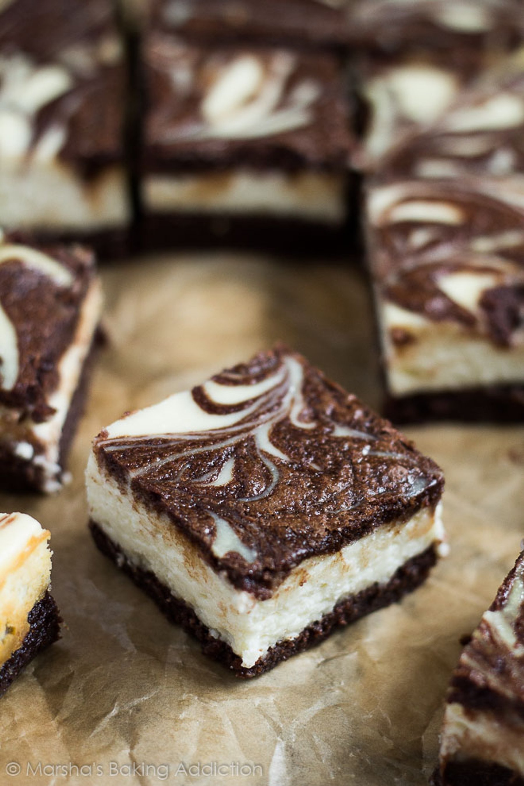 Scrumptiously rich and fudgy brownies topped with a creamy cheesecake layer with a brownie swirl. A perfect cheesecake brownie combination!