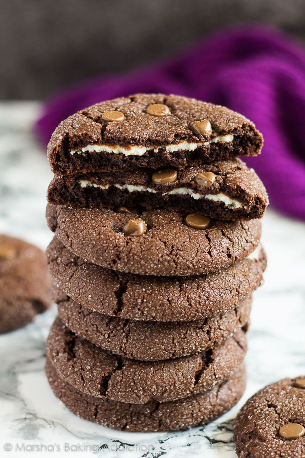 These deliciously thick and chewy chocolate cookies are stuffed with creamy cheesecake, and studded with chocolate chips!