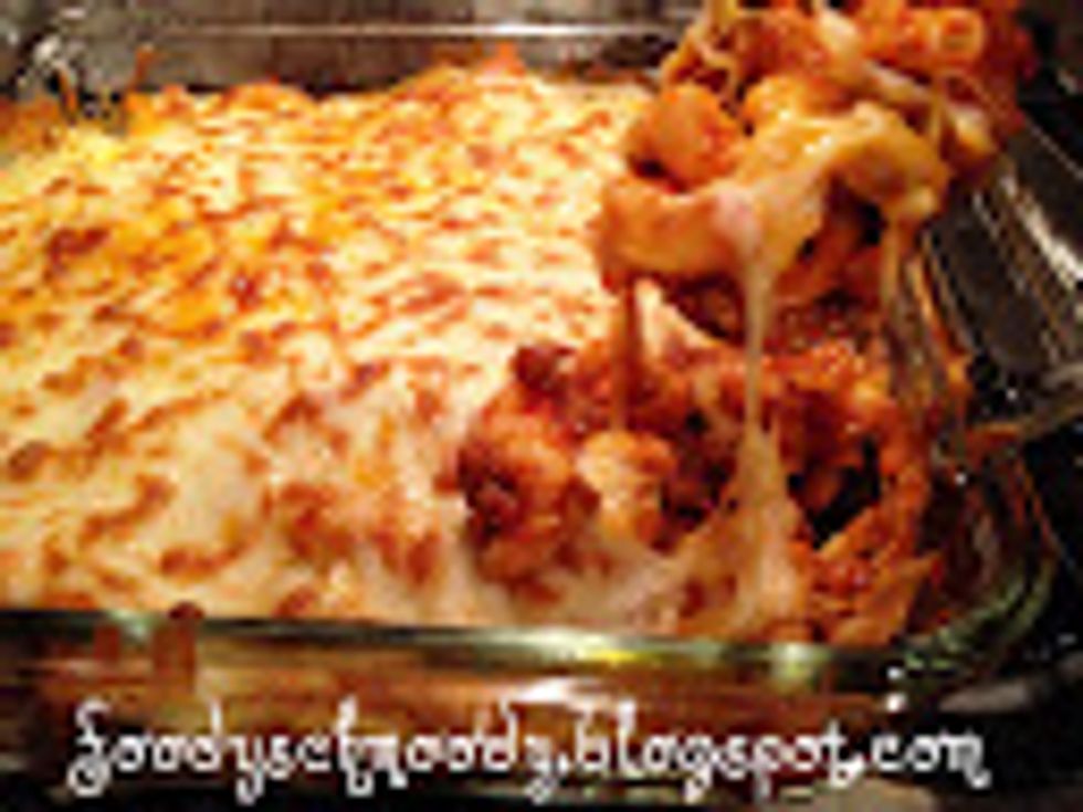 COMFORT FOOD ALERT! Yum is all I have to say. This is one of those dishes that is perfect to pull out of the freezer on one of those crazy nights that one kid has to get here and one has to get there and oh yeah, the husband is going to be late so you will have no time away from the little ones to get a decent dinner cooked. Yup it's one of those days! This is great because you can pop one fresh in the oven whenever and freeze one for one of "those" days. Feel free to play
