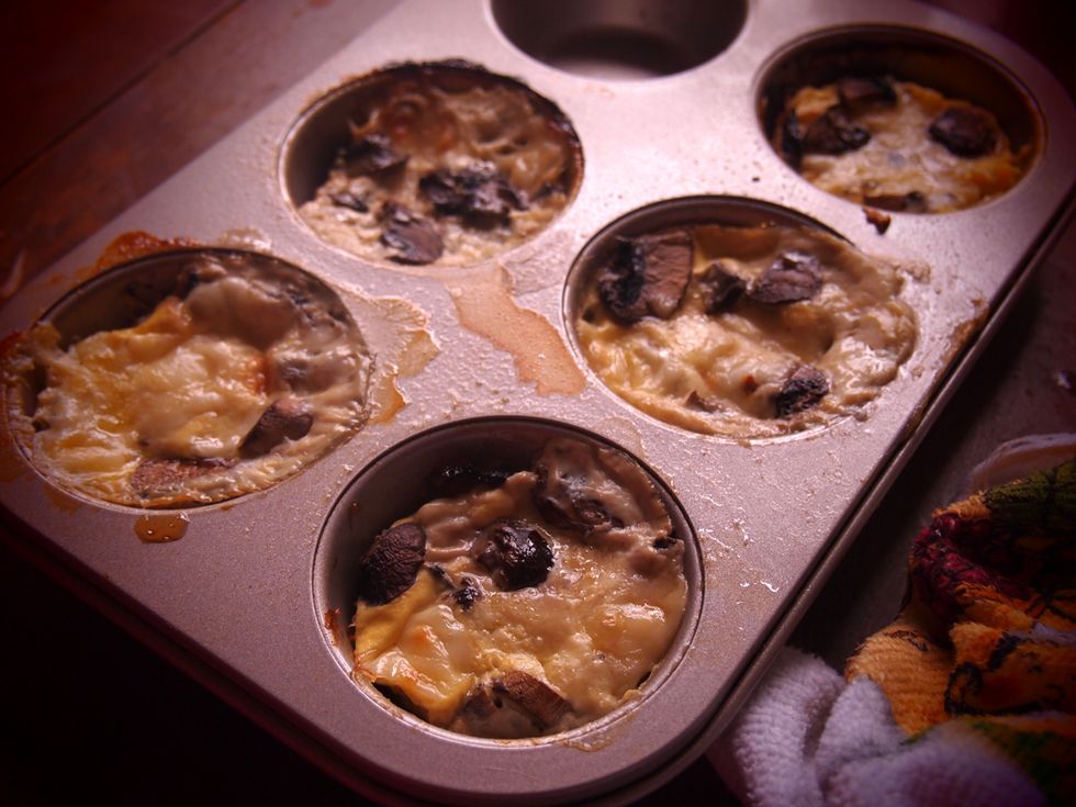 Measure two tablespoons each of egg beater into two muffin cups. Chop up one of the turkey breakfast sausage links and put it in the egg mixture. Add half a tablespoon of milk to each muffin cup as...