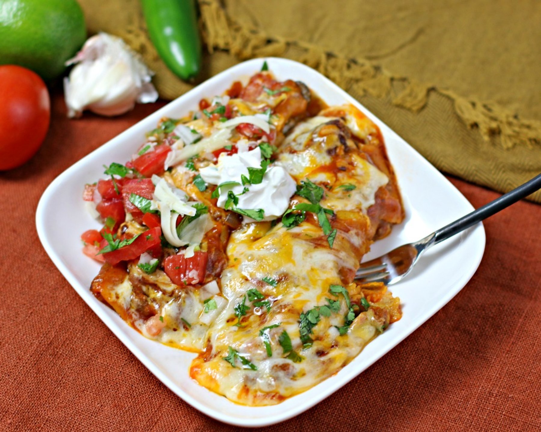 These loaded Cheesy Adobo Enchiladas are made with toasted corn tortillas stuffed with beef, chilies, onion, a blend of two melted cheeses and a kicked up sauce that will change your life! Serve it hot and bubbly straight out of the oven for maximum smiles!