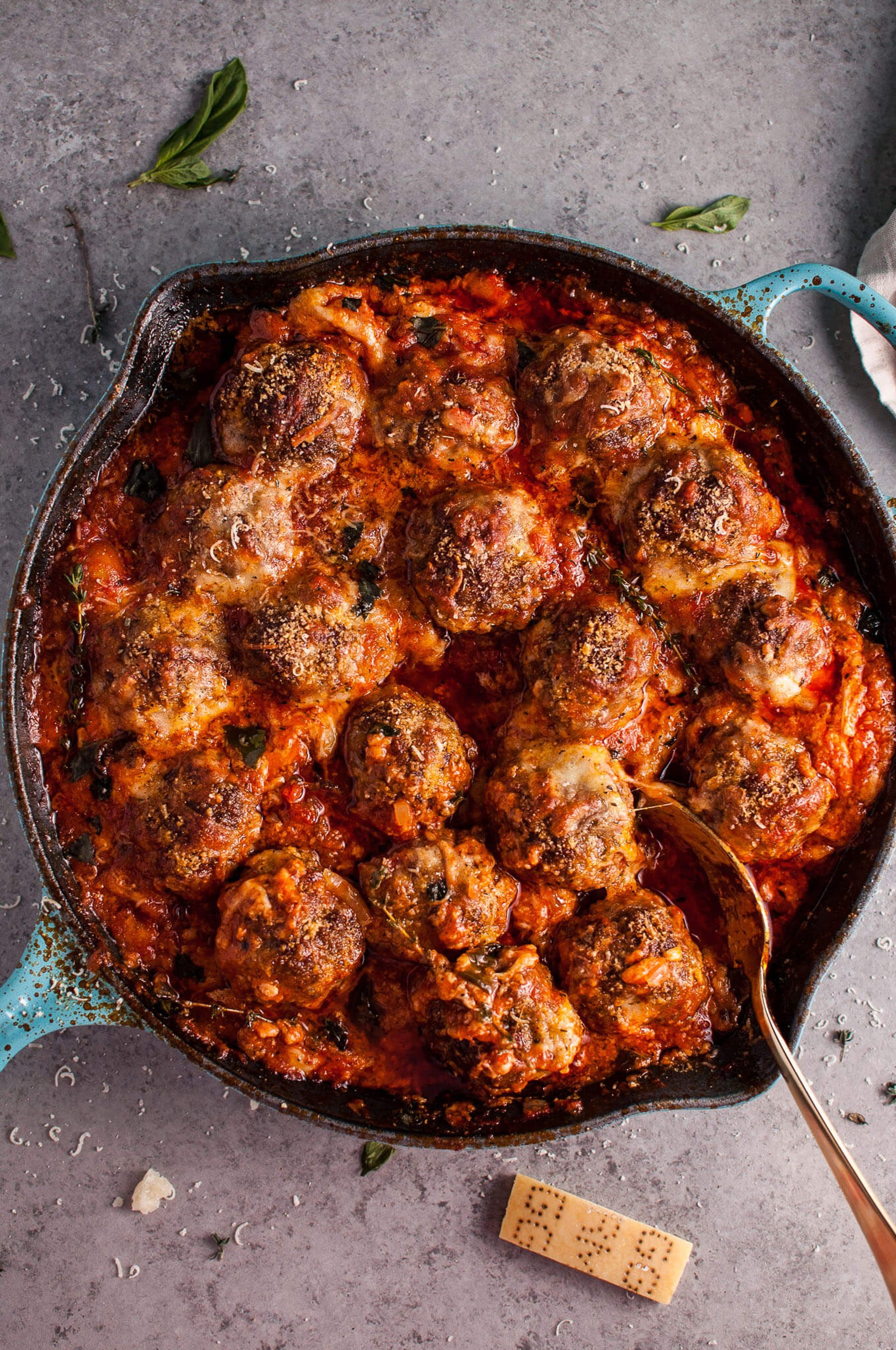 Main Dishes Cheesy Baked Meatball Skillet Natasha BullNovember 11, 2016 90 Tender and flavorful meatballs, a rich tomato sauce, and plenty of melted cheese make this skillet recipe a winner.http://www.saltandlavender.com/cheesy-baked-meatball-skillet/See the full directions on my site Dinner