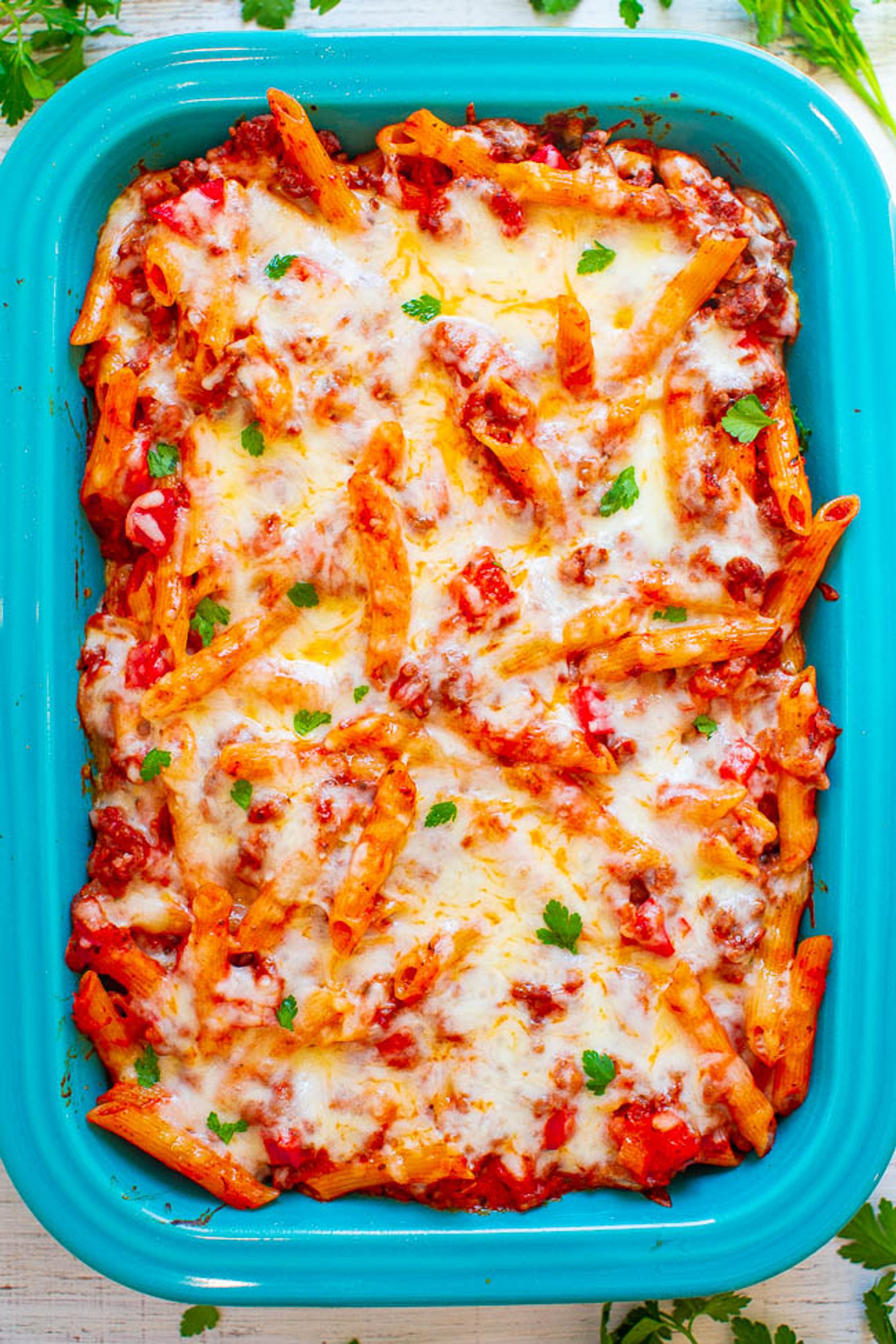 Cheesy Beef and Pasta Casserole - Averie Cooks
