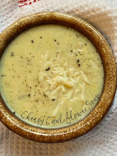Cheesy Cauliflower Soup Lynn HuntleySeptember 04, 2020 56 Cheesy and delicious! Packed with good for you cauliflower too. An immersion blender gives this soup great texture. 6Try This RecipeSee the full directions on my site