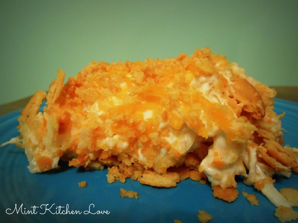 Delicious, creamy, cheesy chicken mixed together in a potato-topped casserole.