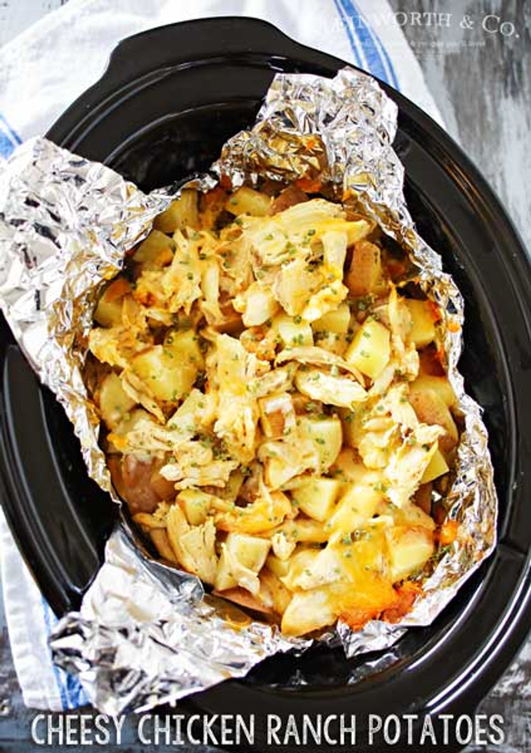 Line a large (6-7 qt) slow cooker with foil & spray with cooking spray