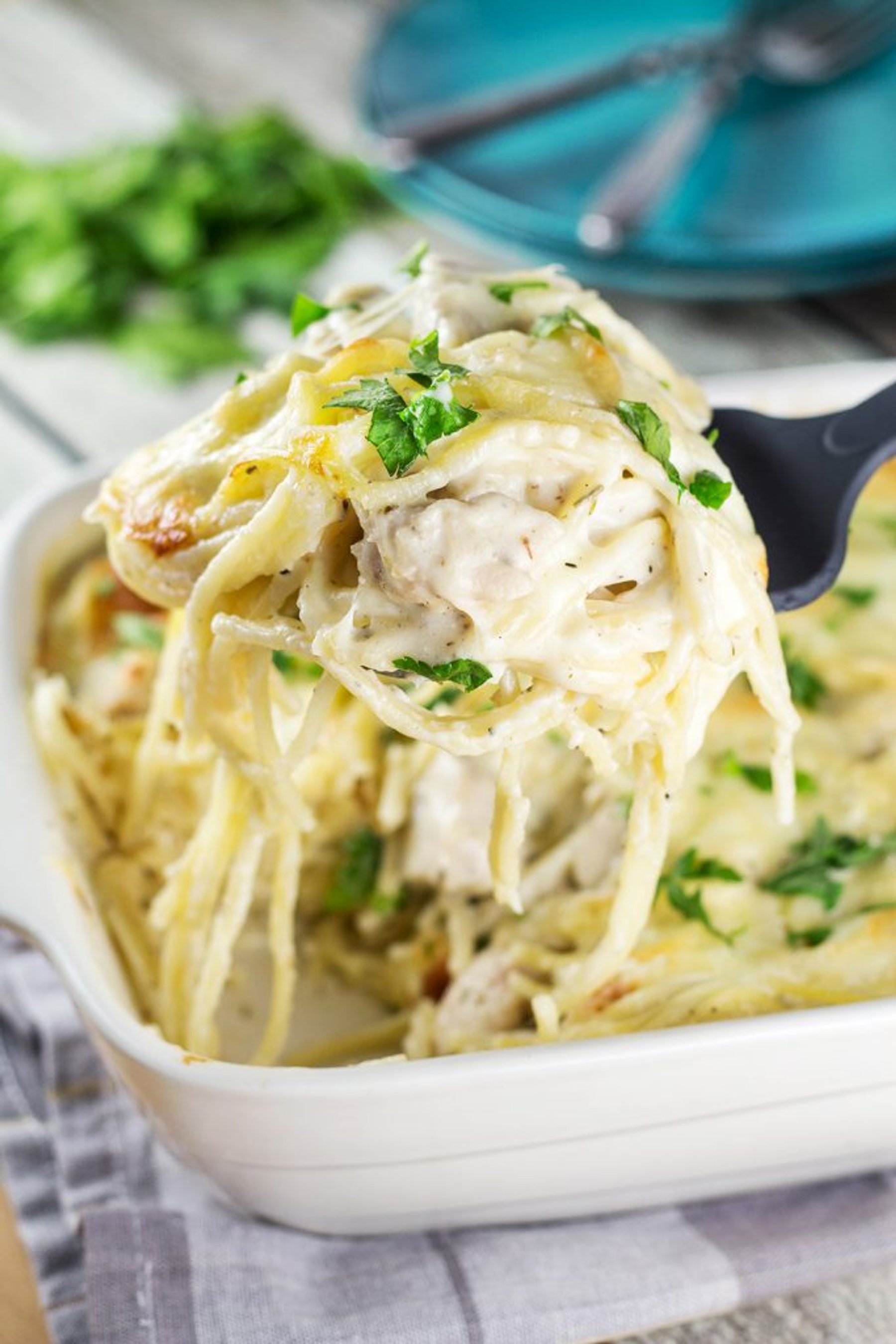 This Cheesy Chicken Spaghetti Bake is exactly what you need after a grueling day at work. Hearty and filling!
