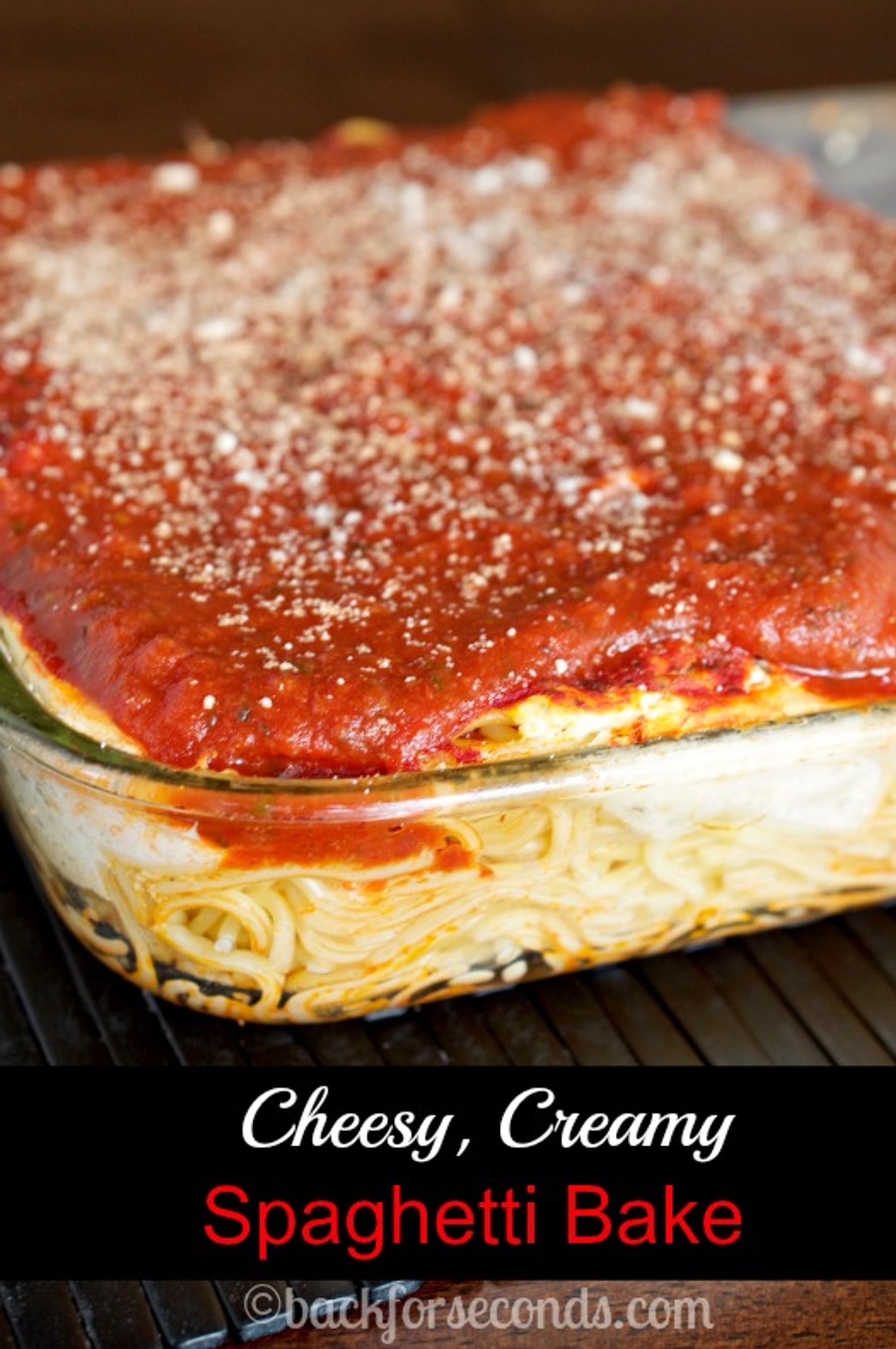 This easy Cheesy, Creamy Spaghetti Casserole is total comfort food! It takes just a few minutes to put together and the result is something everyone loves!!