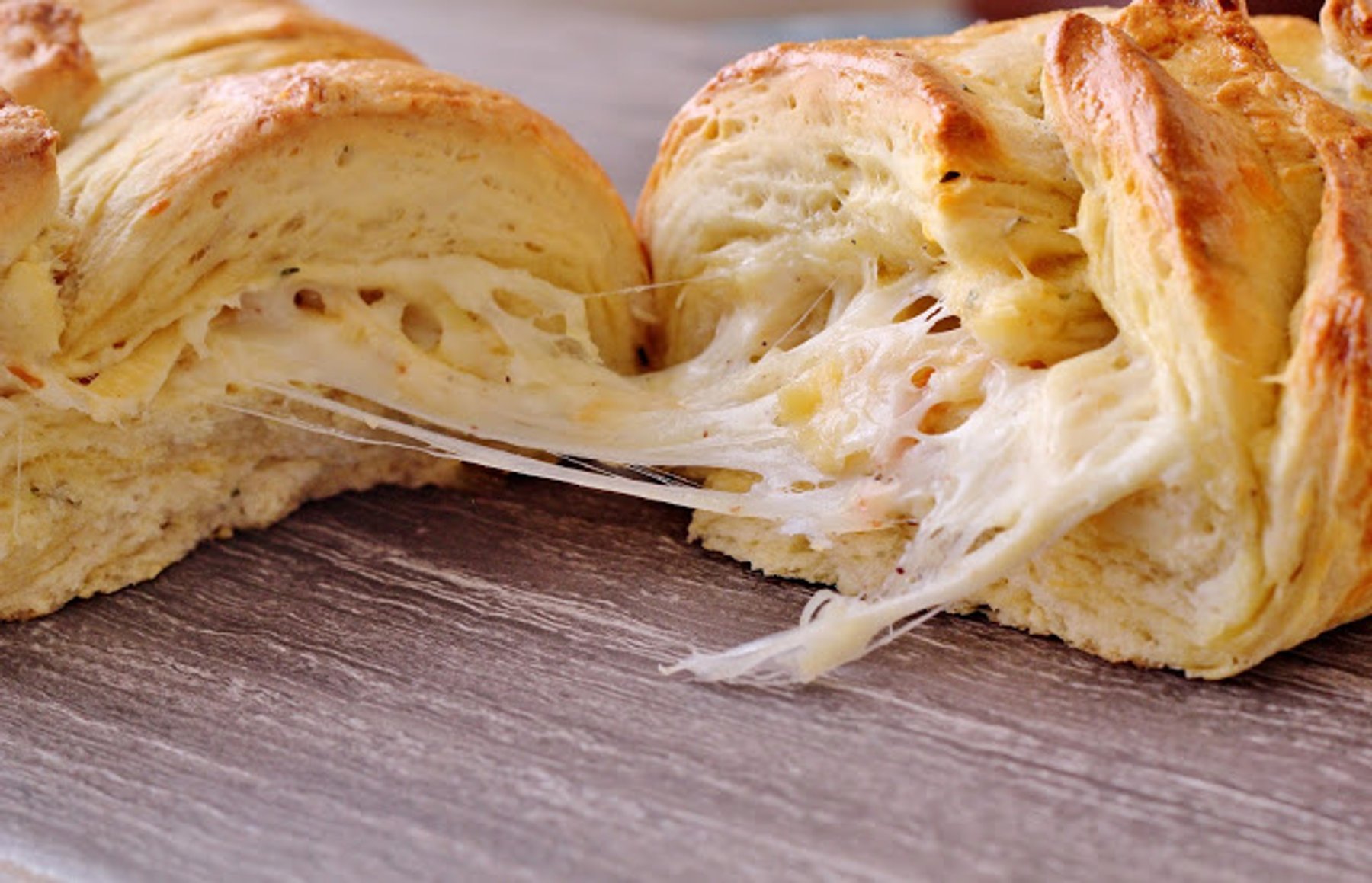 This rustic bread flavored with rosemary all wrapped around a dreamy, gooey cheese combination fills the house with a wonderful aroma and pairs well with soups and stews.