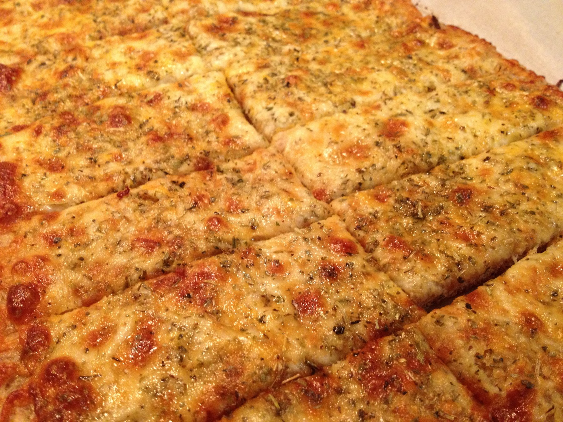 Roll out pizza dough on a baking pan. Brush dough lightly all over with olive oil. Sprinkle shredded mozzarella all over dough. Use your fingers and sprinkle minced garlic all over the dough. Sprinkle Italian seasoning on the top, as desired. Bake at 425 for 12-18 minutes.