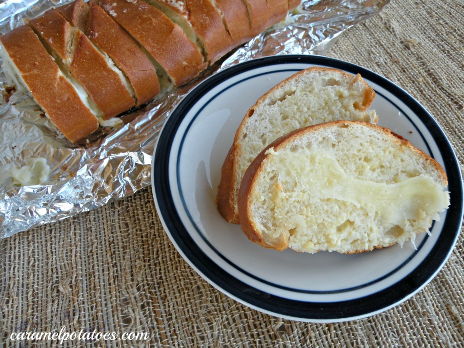 What could be better than warm gooey cheese, a little garlic and french bread? There is not a lot that comes to mind. Combining cheese and bread is always okay with me. This takes store-bought french bread and takes it to a whole new level. I could really just be happy eating this bread for dinner. I know it is meant to be paired with a main dish for dinner, but sometimes this becomes my main dish!