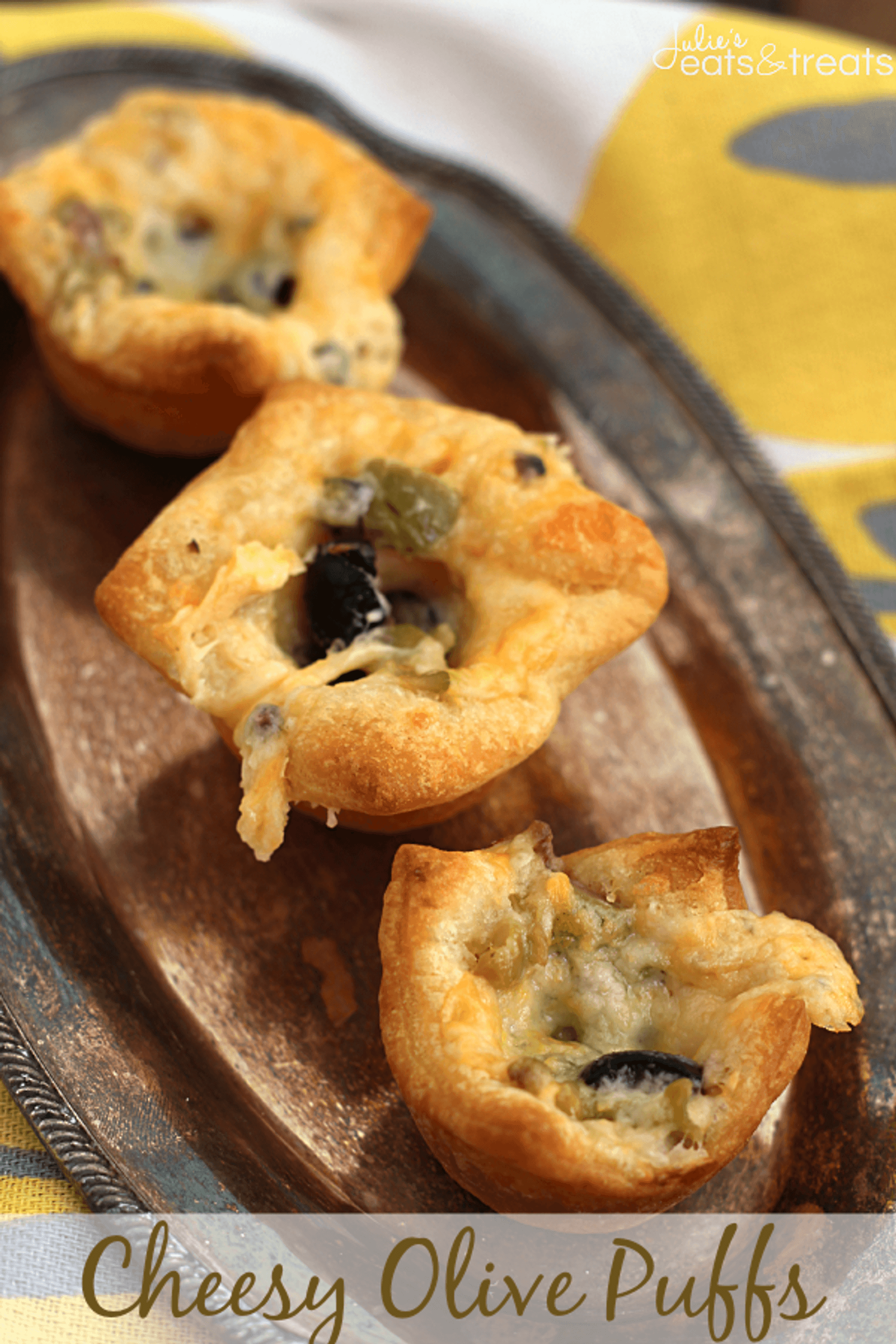 Cheesy Olive Puffs ~ Flaky crescents stuffed with cheese and olives!