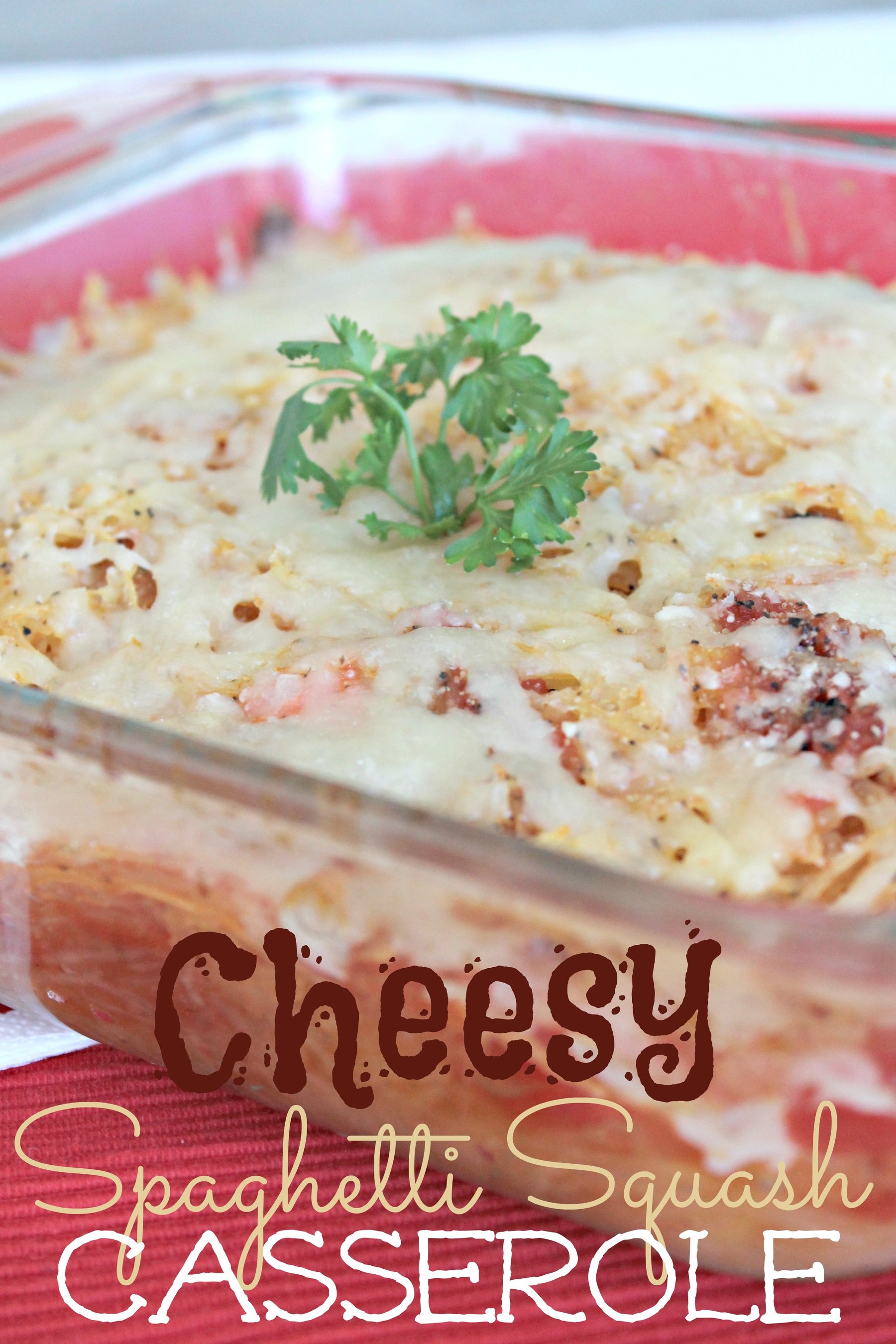 I have a lot of spaghetti squash right now and I wanted to try a new way to eat it. This Cheesy Spaghetti Squash Casserole tastes delicious and it is good for you!
