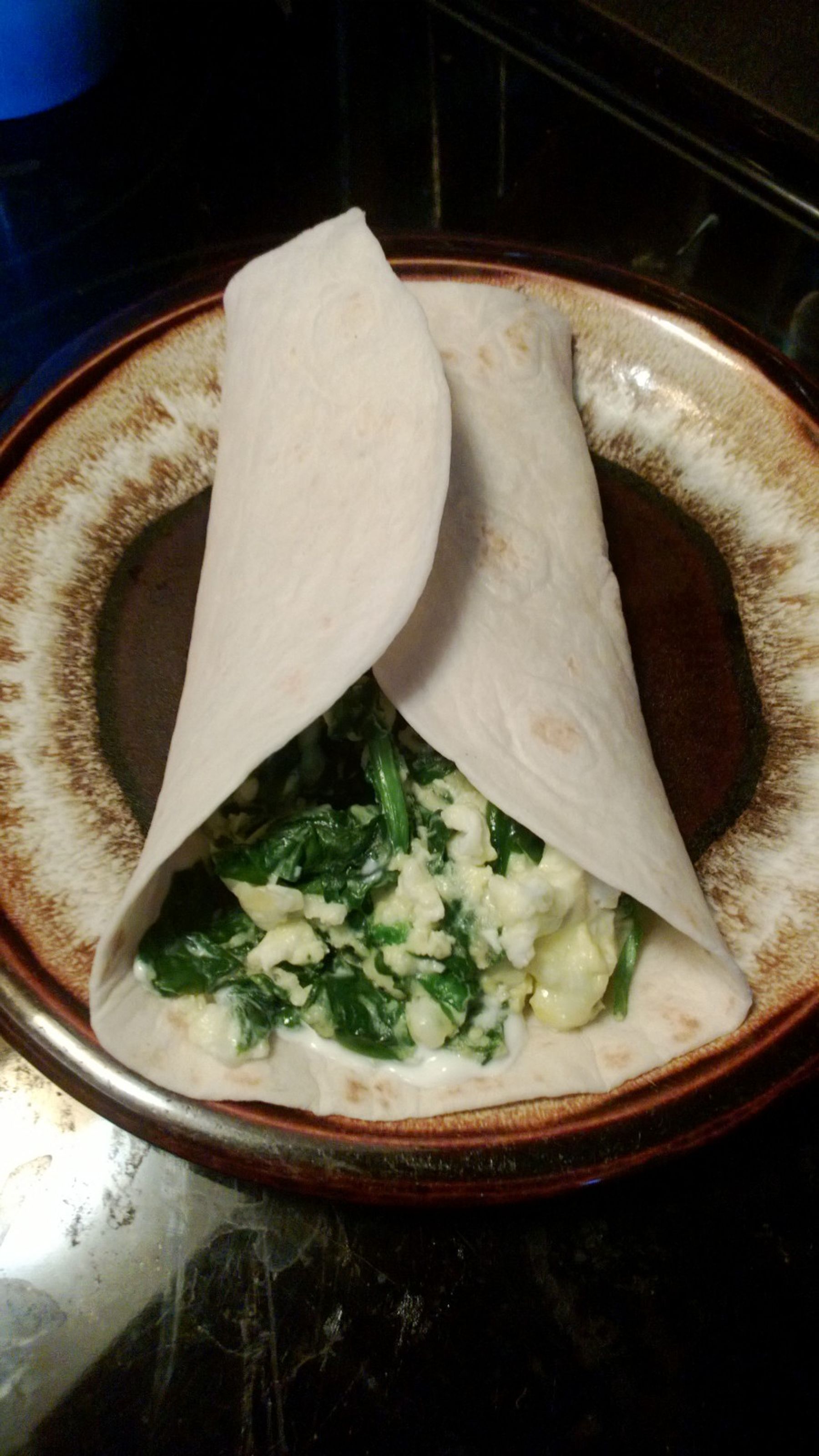 This breakfast burrito is delicious, easy and takes less than five minutes to make from the time you open the fridge until you take that first scrumptious bite. If you who are too busy or too lazy to take alot of time on the first meal of the day, this recipe is perfect for you!