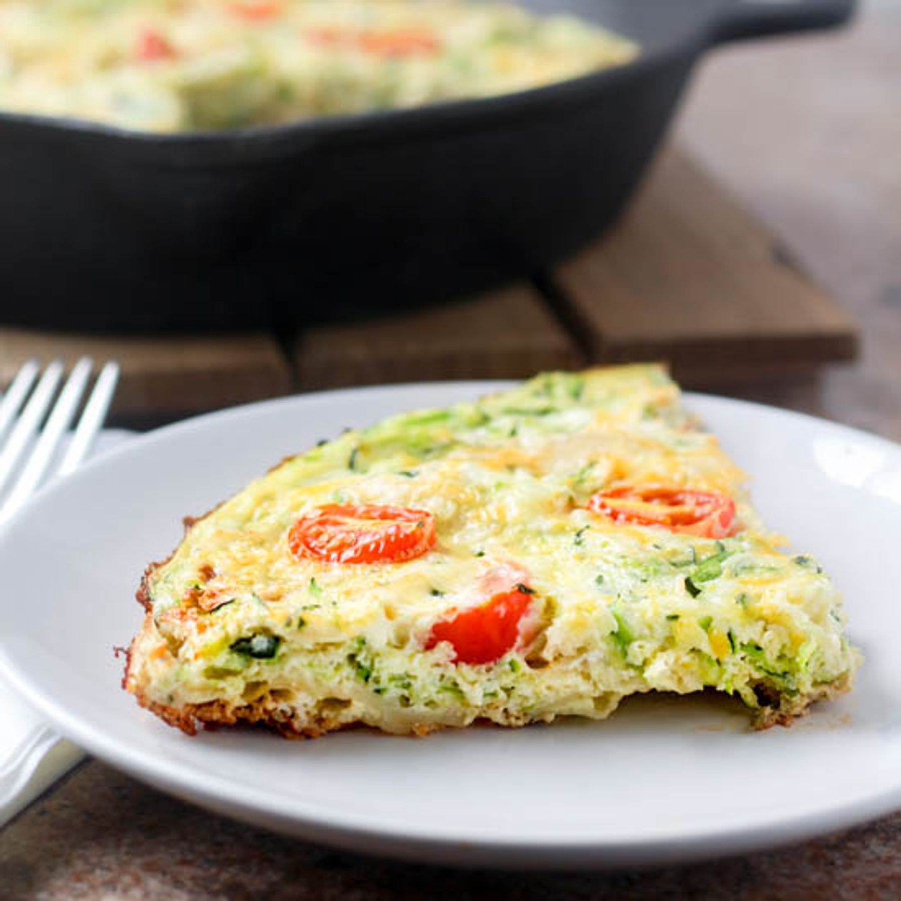 Cheesy Zucchini Tortilla Quiche is packed with layers of tortilla strips and zucchini shreds in between fluffy savory cheesy eggs. It’s a high protein, spicy, balanced way to start your day!