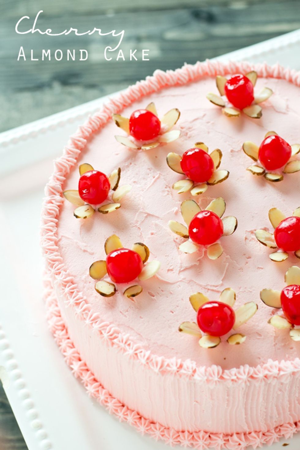 Light, airy from-scratch maraschino cherry cakes with pink almond and cherry flavored buttercream.