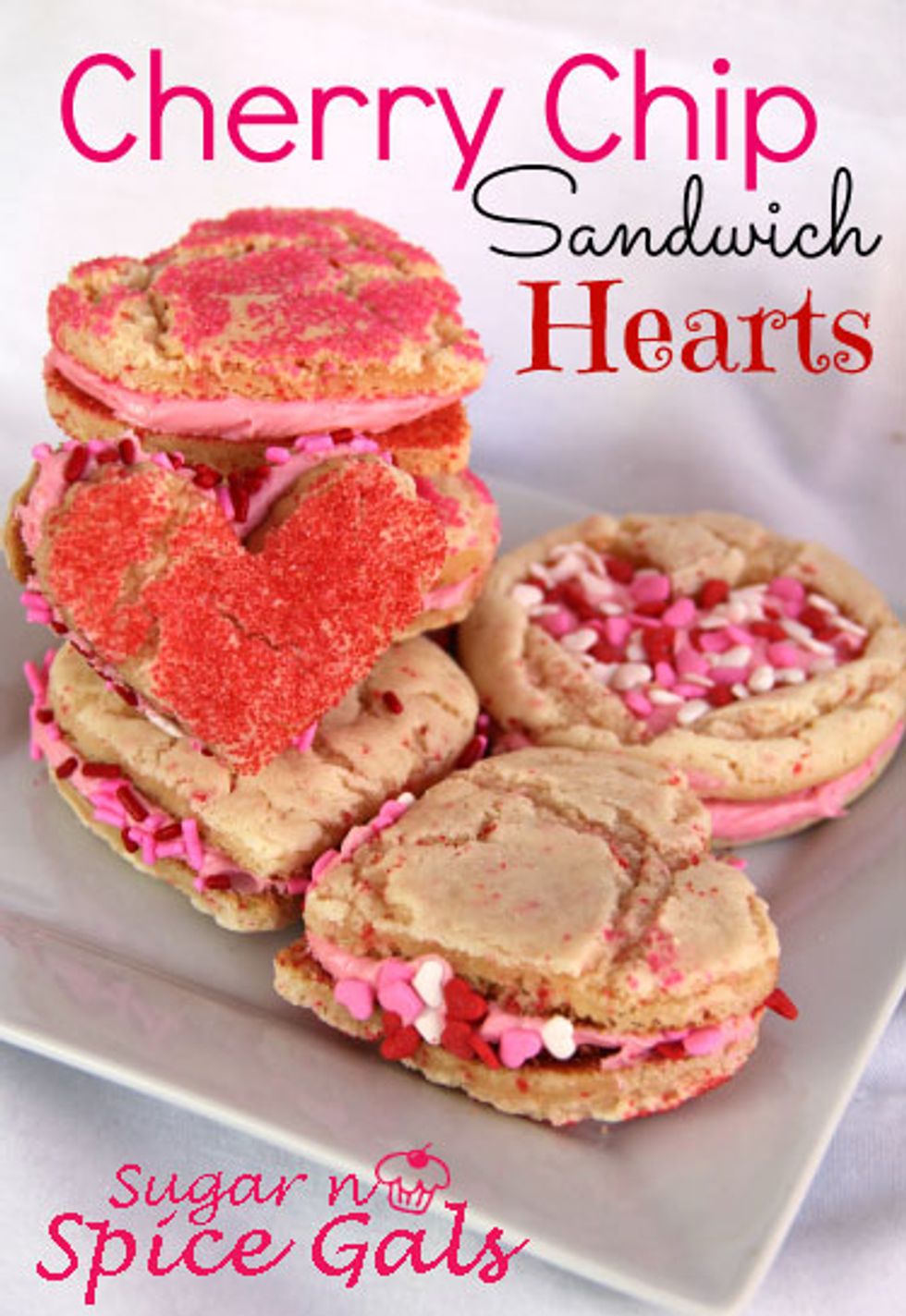 I love making cookies out of cake mix because it is super easy, tasty, and the possibilities are endless. I actually tried making just plain cherry chip cake mix cookies several years back and absolutely loved them. So I thought I would take that same recipe and turn them into heart shaped sandwich cookies...Why not! The end result were these super easy, super delicious and festive cookies that make the perfect Valentine treat. - Heather