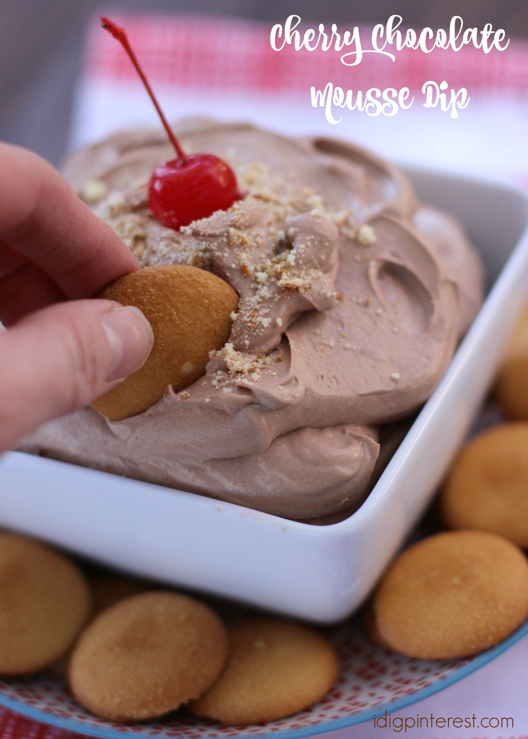 This fluffy mousse and cheesecake-like cherry chocolate dip is SO addicting! Serve it with graham crackers, fruit, chocolate sandwich cookies or vanilla wafers for the ultimate tasty treat!