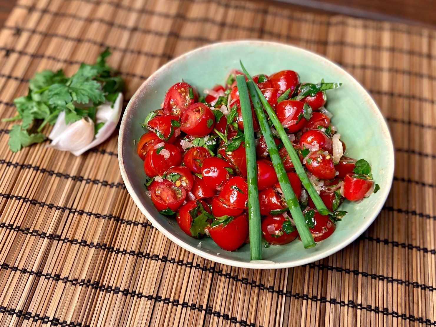 Cherry Tomato Salad with a Warm Garlic-Shallot Dressing