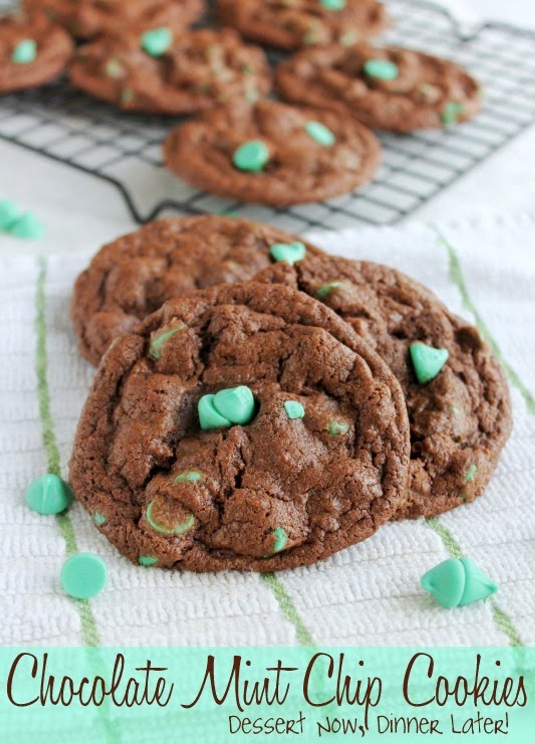 Soft, chewy chocolate cookies with melty mint chips.
