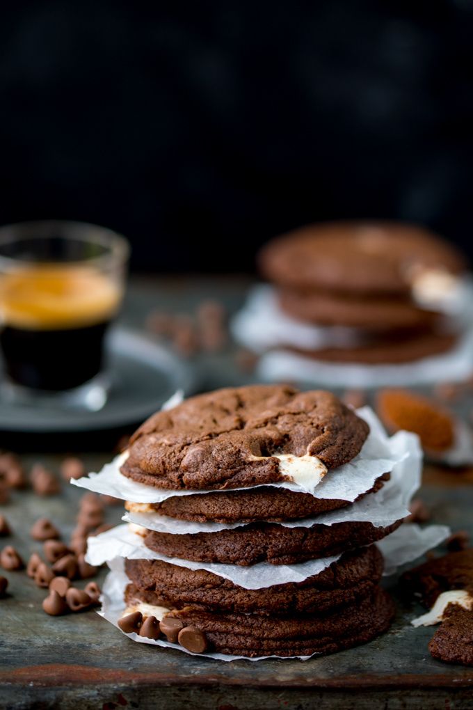 Soft and chewy double chocolate cookies, with chunks of melty, chewy nougat. This recipe makes 20 cookies! You can also freeze the cookie dough balls and cook individually if want snacks on hand for one.