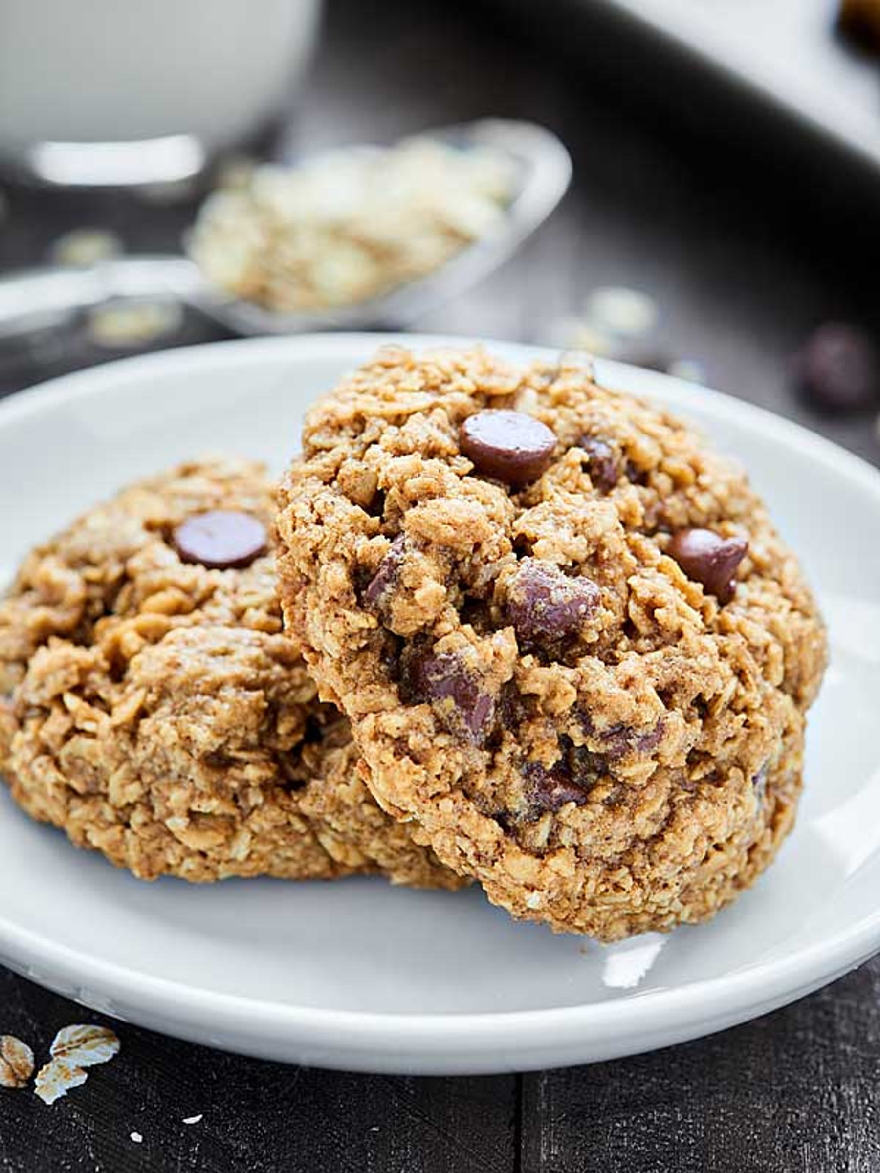 Oatmeal Chocolate Chip Cookies - ultra chewy & naturally gluten free. These cookies are full of oats, brown sugar, cinnamon, & choice chips!
