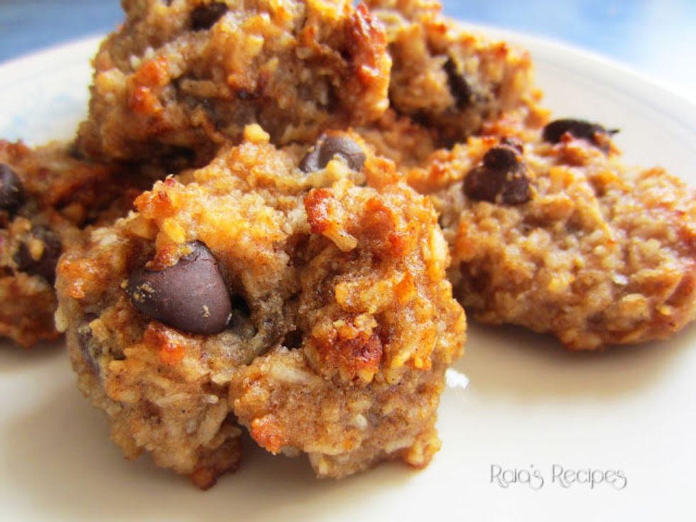 Preheat oven to 350. Line a cookie sheet with parchment paper. Whisk together coconut, coconut flour, baking powder, baking soda, and cinnamon. In separate bowl, combine the chia and hot water and let stand...